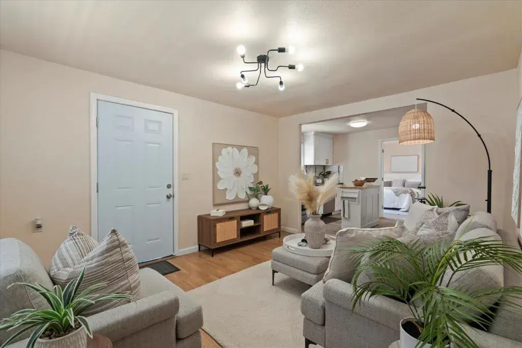This charming home offers 4 bedrooms and 2 bathrooms, PLUS a versatile bonus room ideal for a home office, dining room, den, or playroom. The exterior has been freshly painted and features a classic white picket fence for added curb appeal. Inside, the renovated kitchen showcases white cabinetry and stainless steel appliances. Enjoy modern upgrades including a tankless water heater, central heating and air conditioning, and copper plumbing. The hallway is extra wide, leading to an oversized bathroom for added comfort. Additional features include indoor laundry hookups and a low-maintenance yard with turf, perfect for relaxing or entertaining outdoors. 2 car carport, with automatic gate. Conveniently located near the San Jose Municipal Golf Course, major highways (101, 880/17), and just minutes from the amenities of Downtown San Jose.