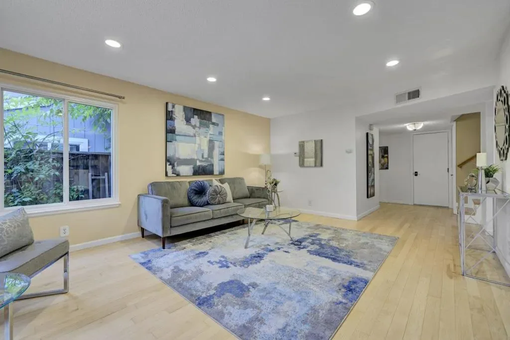 Beautifully updated 3-bed, 2.5-bath townhome in a desirable gated community filled with plenty of natural light. The open-concept living and dining areas flow seamlessly to a spacious, low-maintenance backyard with paversperfect for indoor-outdoor living. Enjoy modern wood flooring throughout and a stylish kitchen featuring white oak cabinetry, stainless steel appliances, and granite countertops. The spacious primary suite offers a giant walk-in closet and an en-suite bath with dual sinks. Well-sized secondary bedrooms provide flexibility for family, guests, or a home office. Additional highlights include a spacious attached 2-car garage. The HOA covers landscaping, gate, roof, exteriors and common areas. Conveniently located near shopping centers, public transit, and major freeways for easy commuting.