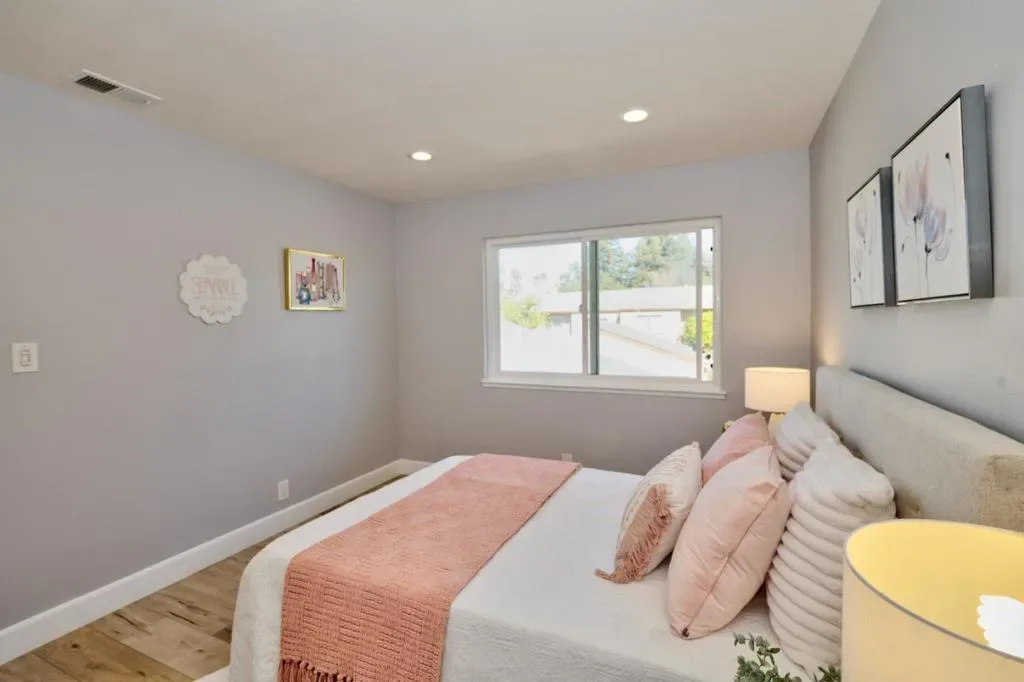 Updated Real Townhouse with 2-car side-by-side garage & private courtyard *Quiet location at center of the community *Bright/airy floor plan, vaulted ceilings, dual-pane windows, 3-skylights *Fresh interior paint *High-quality laminate wood flooring in living area and bedrooms *Durable tile flooring in kitchen & baths/laundry *Brand-new high-end carpeting on staircase *Elegant fireplace, modern crown molding in living area *Dimmable recessed lighting throughout *Wide sliding glass door in dining area *Stainless steel stove/hood/sink, brand new faucet, modern cabinetry, updated lighting, garden window, quartz countertops w/ full backsplash, breakfast bar in kitchen *Breakfast nook area *Refrigerator/washer/dryer included *Vaulted ceilings & recessed lighting in master room *Recessed lighting in 2 bedrooms *Closet organizers in bedrooms *Skylights in 2 bathrooms & above the staircase *Copper Plumbing upgraded throughout *New 50-gallon water heater *Central A/C *Short commute to Apple, NVIDIA, Google, Meta, and many major Silicon Valley employers *Walking distance to shops, restaurants, parks, supermarkets & Top-rated schools *Easy access to Highways 85 & 280 *Swimming pool, spa, clubhouse, playgrounds in community