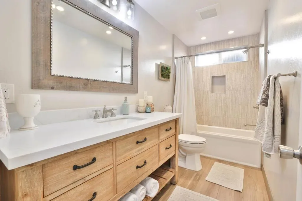 Beautifully updated 3-bedroom, 2-bathroom home offering a bright, open layout and modern finishes throughout. Thoughtfully upgraded, this home features a chef-inspired kitchen with maple cabinetry, stunning Venetian Gold slab granite countertops, a premium Windcrest 6-burner cooktop, wine cooler, and skylight that fills the space with natural light. Additional upgrades include remodeled bathrooms, new flooring, fresh interior paint, and recessed lighting, creating a clean and contemporary feel throughout the home. Step outside to a spacious backyard with a pool, perfect for entertaining guests or enjoying your own private retreat. This move-in ready home combines comfort, style, and functionality a true gem you wont want to miss!