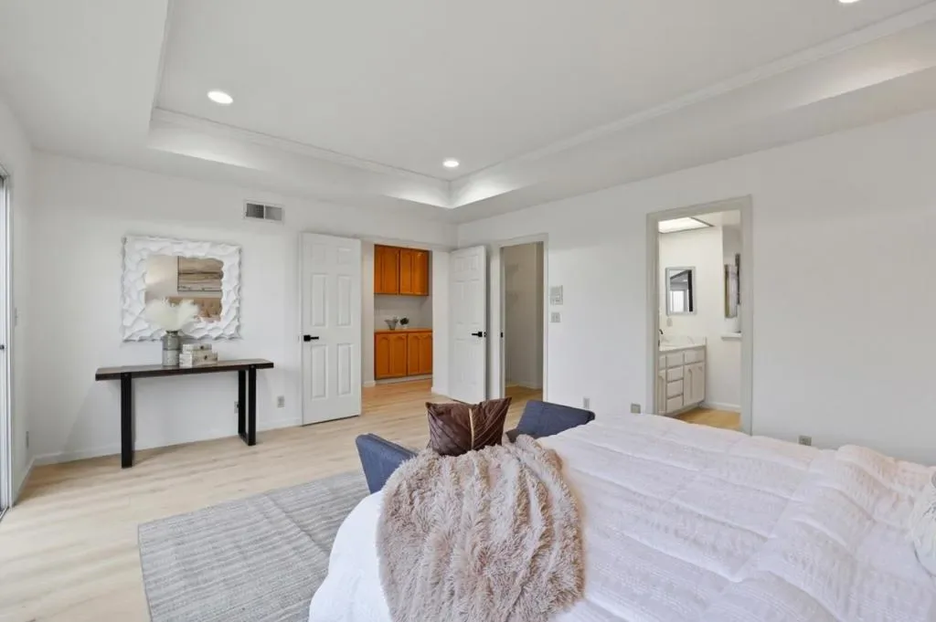 Quiet neighborhood / lots of privacy in the back yard, Recent updates are showcased in this 3 bed, 2 bath home offering 1,827 sq ft of comfortable living space on a 5,985 sq ft lot. The kitchen features new quartz countertops, a new cooktop & refrig, updated backsplash, sink, faucet, & cabinet hardware. A tray ceiling adds subtle character, & the eat-in layout includes a slider to the atrium. The living room is filled w/ natural light & features a vaulted ceiling, recessed lighting, & a fireplace with mantel. The dining area includes a built-in cabinet topped w/ new quartz, along w/ a wine refrigerator, while a large slider opens to a private atrium. The spacious primary bed offers a peaceful retreat with a tray ceiling, walk-in closet, & a slider leading directly to the backyard. The primary bath features a new countertop & faucet, dual sinks, a walk-in shower, & a separate tub. 2 additional rooms are well sized, including one with 3 windows that bring in abundant natural light. The hall room has been updated w/ a new toilet & faucet & includes a shower over tub. Freshly painted interiors, new laminate flooring, & new baseboards run throughout the home. Enjoy access to the community pool. Assigned to highly rated Williams Elementary, Bret Harte Middle School, & Leland High.