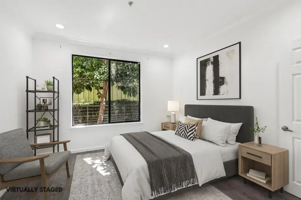Welcome to this stylish 2 bedroom, 2 bath condo offering 1,000 sq. ft. of modern living in the heart of San Jose. Situated on the ground floor, this home features an open living room and kitchen concept with sleek grey and white tones throughout. The updated kitchen boasts refinished white cabinets, stainless steel appliances, white quartz countertops, and a chic tile backsplash, perfect for both everyday living and entertaining. The bathrooms offer spa like comfort with granite counters, white vanities, grey tile accents, and a soaking tub for relaxation. A private back patio extends the living space outdoors, ideal for morning coffee or unwinding in the evening. Enjoy the convenience of underground parking and a secure, locked building with an indoor mail room for packages. The community provides resort-style amenities including a fitness center, pool, conference/meeting rooms, and more all designed to enhance your lifestyle. Just minutes from downtown, shopping, and dining. This home falls within the San Jose Unified School District. Comfort & convenience. Some listing photos have been digitally altered/virtually staged. Original, unaltered photos are available