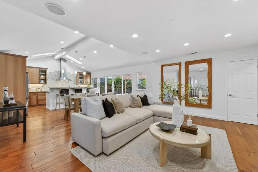 Welcome to this beautifully maintained 3-bedroom, 2-bathroom home in the highly desirable Lynbrook neighborhood. Expanded and renovated with style, the open-concept kitchen features vaulted ceilings and skylights that fill the space with natural light, along with custom cabinetry, stainless steel appliances, and a functional island that flows into the dining and family rooms. Rich hardwood floors highlight a thoughtfully designed layout with separate living spaces, including a second living room with potential as a fourth bedroom. The spacious primary suite offers a tray ceiling, walk-in closet, renovated en-suite bathroom, and direct access to the backyard. Two additional well-sized bedrooms provide flexibility for guests, office, or everyday living. The backyard is a serene retreat with lush landscaping and a sparkling pool with waterfall. Ideally located on a quiet interior street near top-rated Lynbrook High, Miller Middle, Dilworth Elementary, Murdock Park, shopping, dining, and major tech campuses, this is a rare West San Jose opportunity.