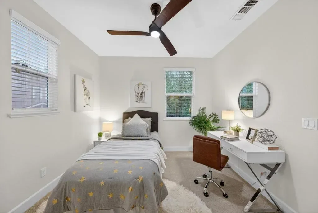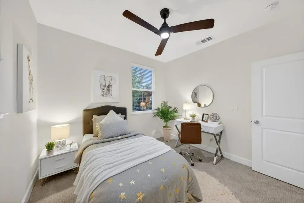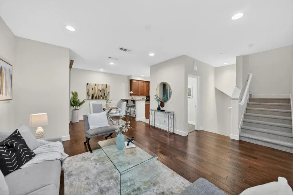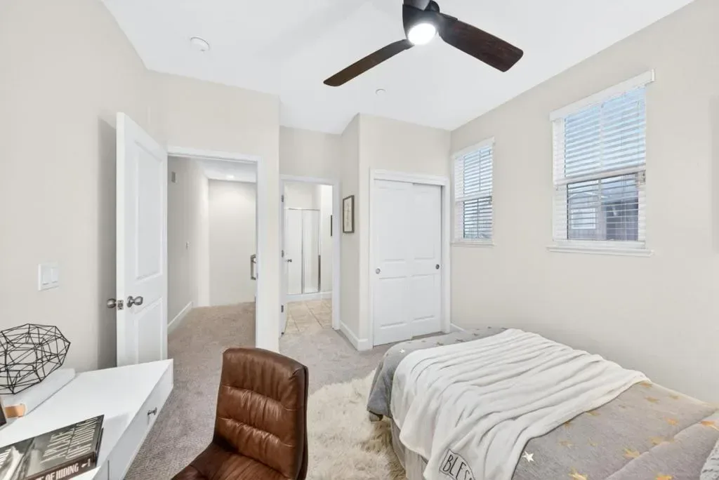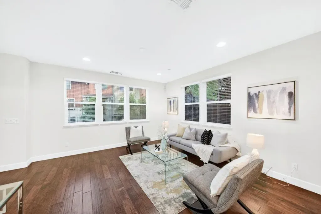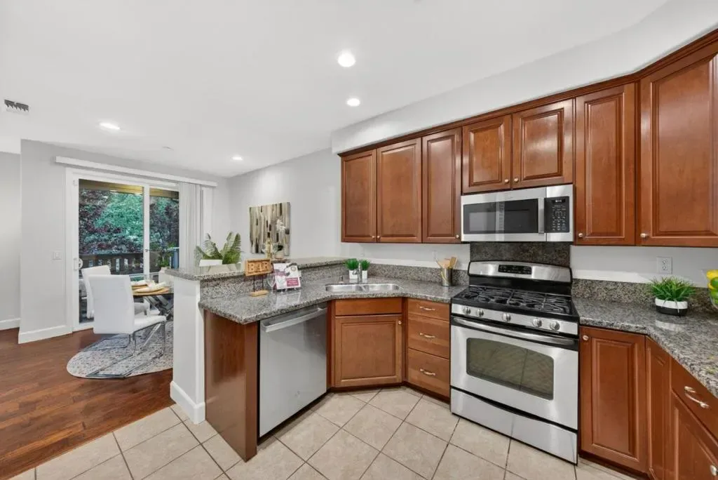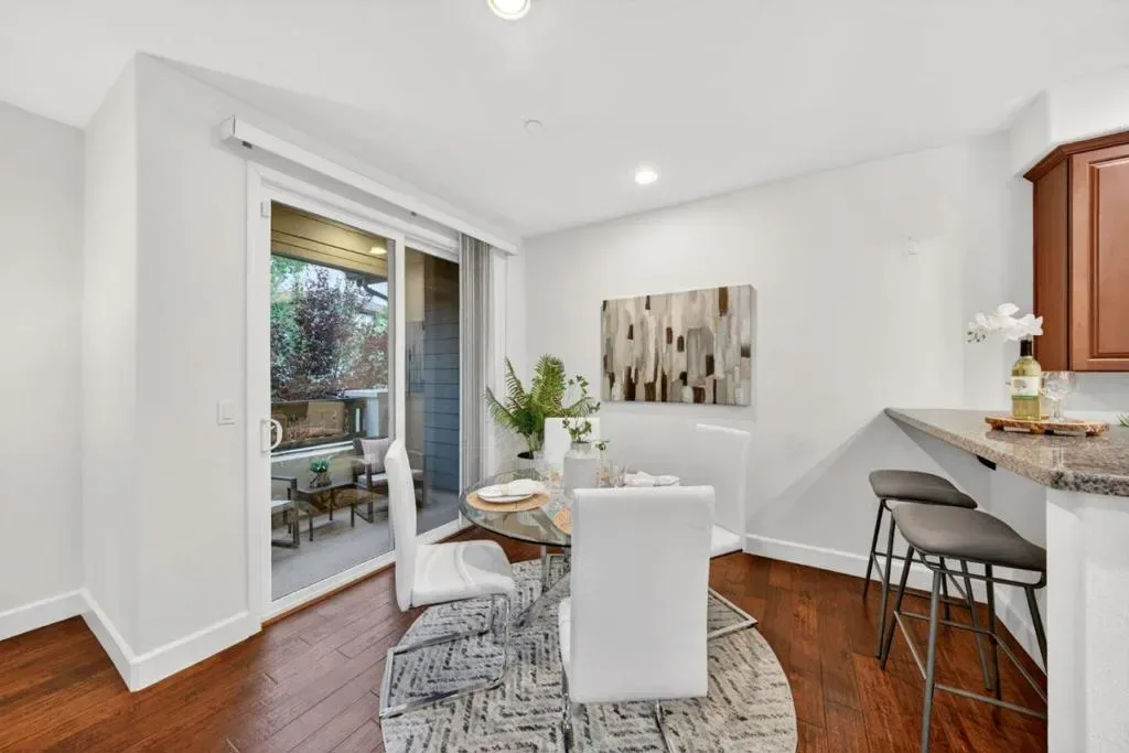 Welcome to 1077 Zucchini Terrace, located in the highly desirable Cherry Blossom at Pepper Tree community. This sought after two-bedroom floorplan offers approximately 1,341 sq ft of thoughtfully designed living space. This end, corner unit provides exceptional privacy with only one shared wall and is filled with natural light from an abundance of extra windows. The main level features hardwood flooring, recessed lighting, and a spacious living area that flows seamlessly into the dining and kitchen spaces, creating an ideal layout for both everyday living and entertaining. The kitchen is appointed with granite countertops, ample cabinetry, and updated appliances. Just off the dining area, enjoy a private patio perfect for relaxing and enjoying upcoming summer evenings. Upstairs, both bedrooms feature en-suite bathrooms, offering comfort and functionality. Additional highlights include indoor laundry, an attached two car garage, new interior paint, new carpeting, a tankless water heater, and central heating and air conditioning. Enjoy community amenities including playgrounds, greenbelts, and a clubhouse, all conveniently located near commute routes, tech campuses, shopping, dining, and so much more. It’s time to call 1077 Zucchini Terrace your HOME!