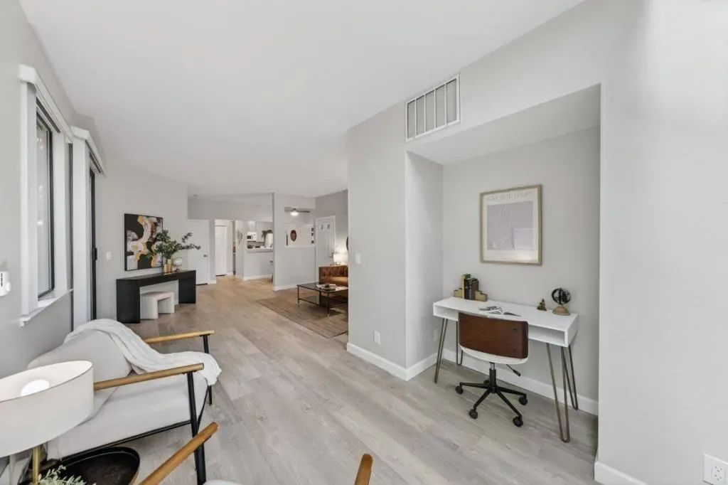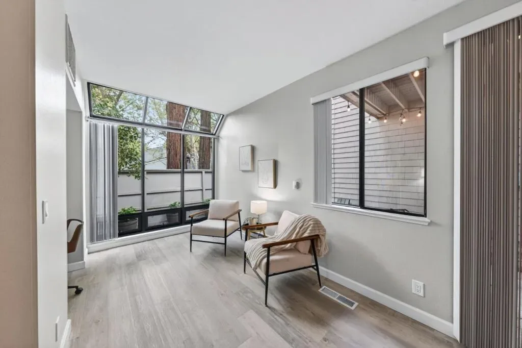 Beautifully renovated, extra-large condominium offering stylish and comfortable living. Thoughtfully upgraded throughout, this rare ground-floor residence blends modern finishes with an open, airy layout perfect for both relaxing and entertaining. Newer luxury vinyl plank flooring, abundant natural light, and a spacious open-concept design with a dedicated office nook ideal for working from home. The expansive living area features 9-foot ceilings, a cozy wood-burning fireplace, and seamless access to your private wraparound patio and fenced yard. The fully updated kitchen and bathroom shine with newer sinks, faucets, vanities, and modern light fixtures. The oversized bathroom offers dual sinks and separate dressing areas for added convenience. Newer stacked washer and dryer are included. Enjoy resort-style amenities including a community pool and spa, plus the convenience of one secured underground parking space and ample guest parking nearby. Moments from Almaden Lake Trail, retail, dining, light rail, and Highways 85 & 87. Set in a quiet, well-maintained community with a high rate of owner occupancy this home offers both comfort and peace of mind. This is a unique opportunity to own a beautifully upgraded condo in one of the area’s most convenient and desirable locations.