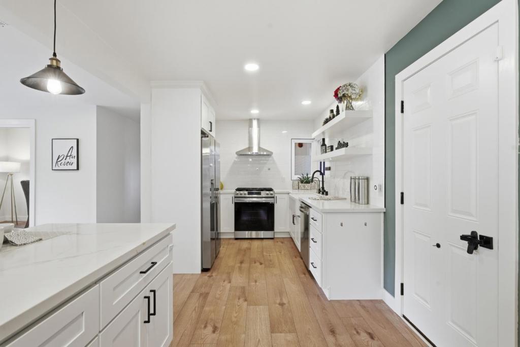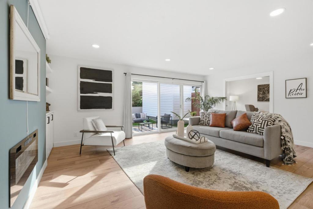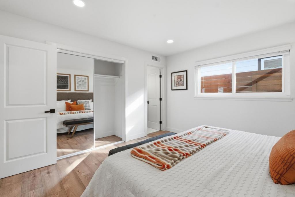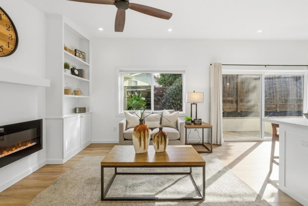 Total living space 1774 SqFt, Owned solar ADU This unique beautifully remodeled single-story home offers a bright, modern living environment long with a valuable 450 sqft accessory dwelling unit (ADU), providing exceptional flexibility for multigenerational living, rental income, or a private workspace. The main residence plus ADU features 4 Bedrooms, 3 bathrooms, total living space 1774 SqFt. The primary home has been extensively updated with a contemporary open layout. The upgraded kitchen features a large island, Quartz countertops, and a modern tile backsplash, complemented by stainless steel appliances including a gas range. A spacious family room with a patio door brings in abundant natural light, creating a warm and inviting atmosphere. Both bathrooms have been fully remodeled with custom flooring and stylish tile showers. Additional improvements include double pane windows, an electric fireplace, new water heater. The ADU offering a self-contained living space ideal for extended family, guests, or rental opportunities. With its own entrance and functional layout.