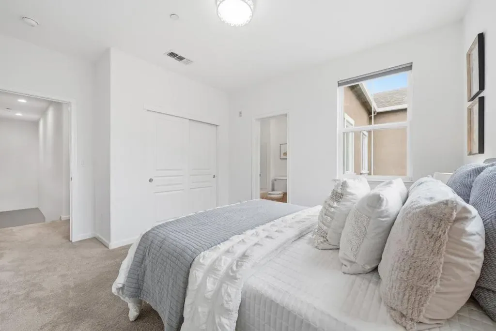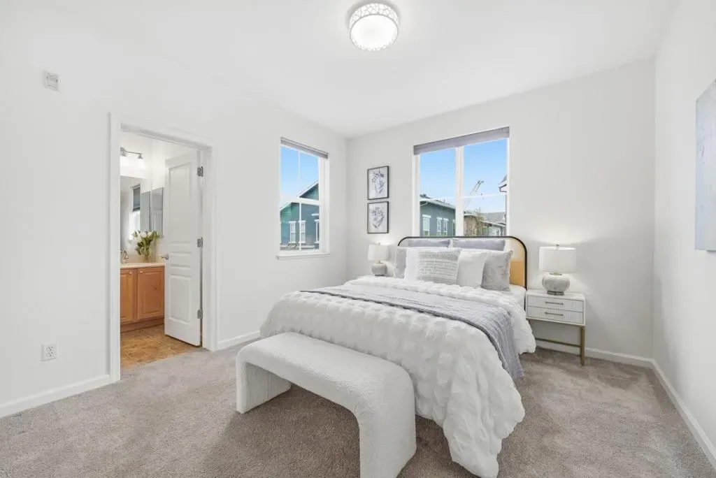 Gorgeous, move-in ready townhouse steps from Newhall Park and walking distance to Santa Clara University! Tucked away from the main street for maximum privacy, this bright, quiet unit is in one of the community’s best locations and offers ample nearby guest parking. It features a fresh interior paint, and newly upgraded modern light fixtures throughout. The main level features high ceilings, recessed lighting, central AC and a convenient powder room. The chefs kitchen is appointed with stain-grade maple cabinetry, granite countertops, a pantry, and premium appliances. Upstairs, enjoy two spacious primary suites, one has a walk-in closet, dual sinks, and a separate soaking tub. The ground level offers a versatile den/office and an indoor laundry room equipped with a new Samsung washer and dryer. The attached 2-car side by side garage with a 220V Level 2 EV charging outlet. Outside, enjoy a private front patio perfect for grilling and gardening. Incredible location with low HOA fees that include water! Less than 1 mile to Caltrain and minutes from SJC, PayPal Park, SAP Center, Valley Fair, and Santana Row. Easy access to 880/87/101 and major tech hubs. Enjoy the best of San Jose living with uncrowded parks and dining just outside your door!