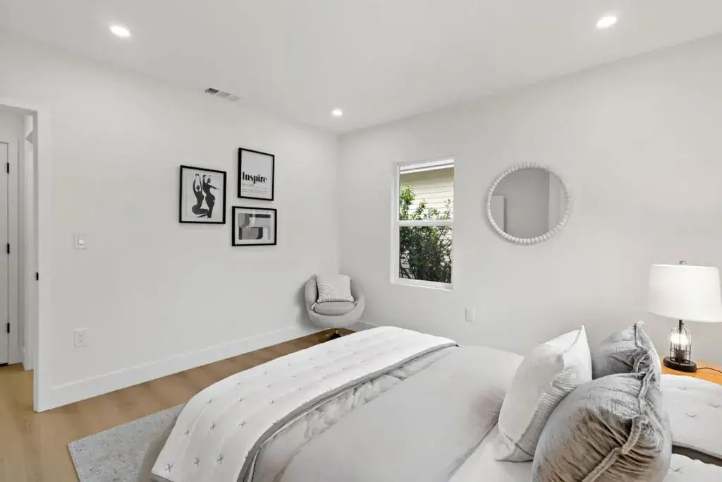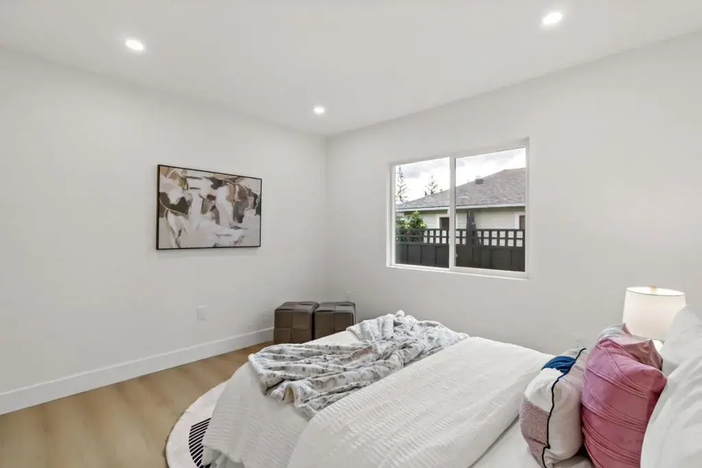 Beautifully renovated home in one of the most desirable Rose Garden neighborhoods. This stunning 3-bedroom, 3-bath residence offers 1,486 sq ft of thoughtfully designed living space on a generous 5,250 sq ft lot, blending modern upgrades with timeless comfort. The home has been fully renovated from top to bottom, including a complete electrical rewire, full plumbing repipe, new tankless water heater, and new HVAC ducting system. Interior updates feature fresh paint, new flooring, custom cabinetry, quartz countertops, brand-new appliances, dual-pane windows, and LED recessed lighting throughout. A spacious primary suite addition adds approximately 477 sq ft, along with a new 25 sq ft entry, enhancing both functionality and flow. The primary and guest suite bathrooms are newly built with contemporary tile, stylish vanities, new tubs/showers, modern toilets, and LED mirrors. Exterior upgrades include new artificial turf in both the front and backyard for low-maintenance living, approximately 80% new roof shingles, and a brand-new roof drainage system. The result is a turnkey property designed for comfort, efficiency, and style. Ideally located near shopping, dining, and major commute routes, this move-in-ready home offers the perfect blend of luxury, location, and lifestyle.