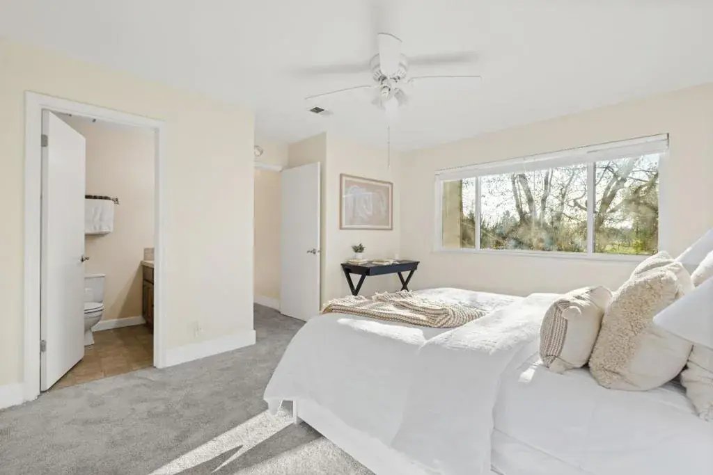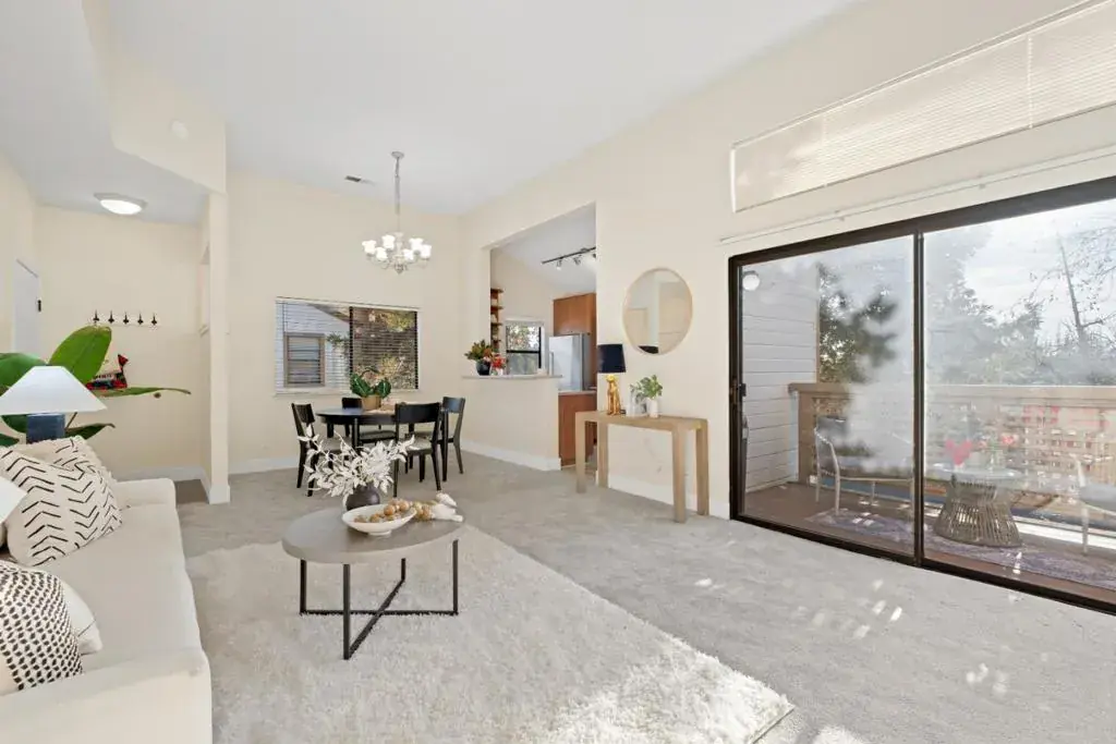 *Welcome to this newly updated corner unit, where modern comfort seamlessly blends with timeless style. Featuring high ceilings, expansive windows and glass doors, this bright and airy home offers a warm, inviting ambiance throughout. The spacious open-concept living and dining area flows seamlessly into a sleek kitchen, complete with stainless steel appliances, ample cabinetry, and a convenient breakfast bar, perfect for everyday living and entertaining. *Enjoy relaxing moments on the charming balcony, which overlooks a lush greenbelt and includes a bonus storage room. Enjoy the added convenience of newly installed flooring, central heating, in-unit laundry, and a detached garage #228. The generously sized master bedroom features a custom-shelved closet and an elegant ensuite bath with dual sinks. *Ideally located just a short walk from Townsend Park, this gem is surrounded by popular spots like Safeway, Sprouts, H-Mart, Ranch 99, and Costco. Enjoy seamless access to major freeways (101, 680, 880, 237), BART , and leading tech giants such as Nvidia, Google, Apple, and Supermicro. An extraordinary blend of comfort, style, and convenience.