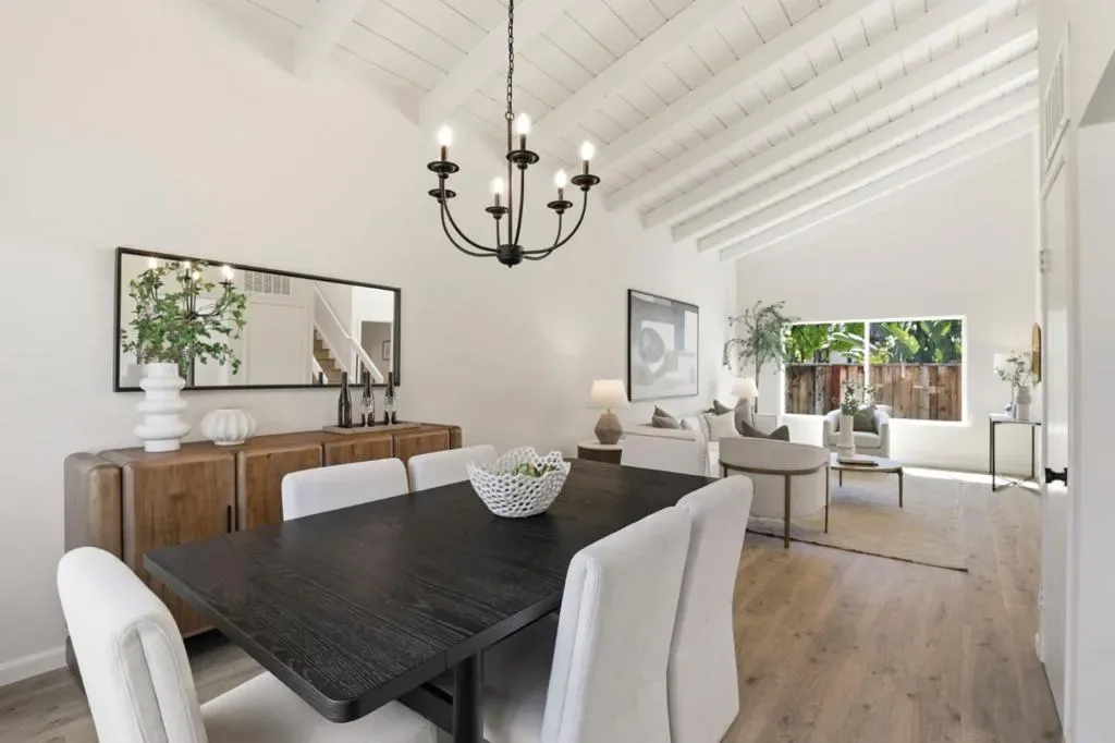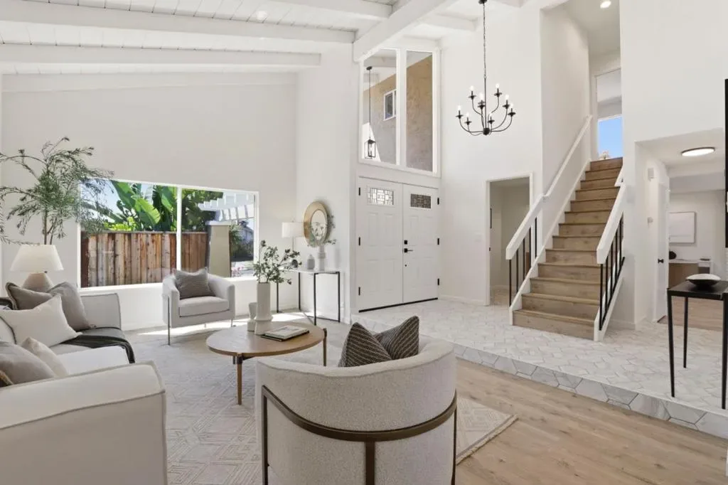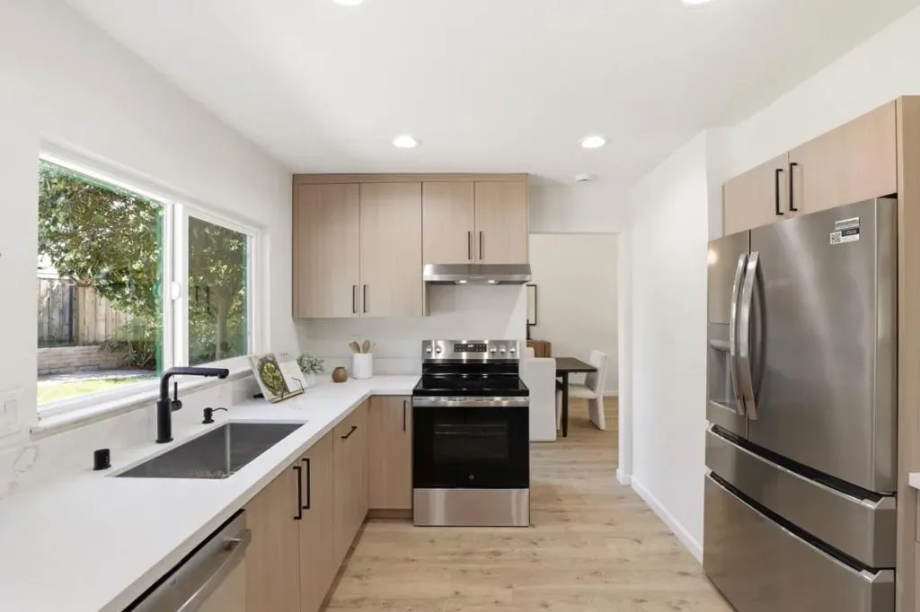 Welcome to this beautifully remodeled two-story home in the heart of Berryessa, offering 2,079 square feet of thoughtfully updated living space. Freshly remodeled for sale, the home features soaring vaulted ceilings and a light, bright interior with recessed lighting throughout. An elegant tile entry opens to a spacious circular floor plan designed for comfortable living and easy flow. The updated kitchen includes new cabinetry, quartz countertops, and an eat-in peninsula, along with brand-new stainless steel range, dishwasher, and refrigerator. Upstairs are four spacious bedrooms, including a primary suite with a walk-in closet. Bathrooms have been remodeled with new tile showers, vanities, fixtures, and faucets. Additional upgrades include new dual-pane windows, new laminate flooring throughout, fresh interior paint, and a new AC and furnace. A spacious laundry room with a pantry cabinet and an attached two-car garage add convenience. The private yard features lush grass, mature fruit trees, and generous outdoor space. Convenient to shopping, dining, Costco, all major freeways, and the Berryessa BART station!