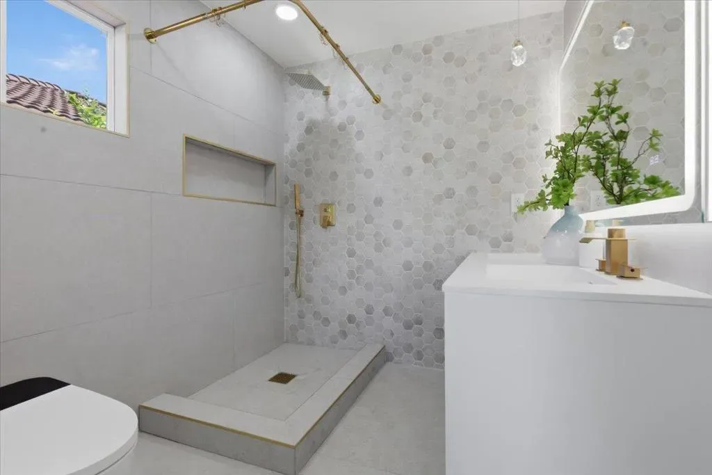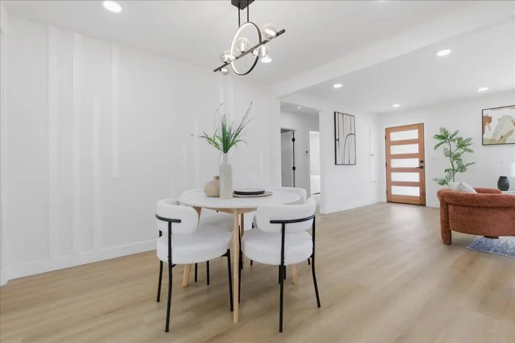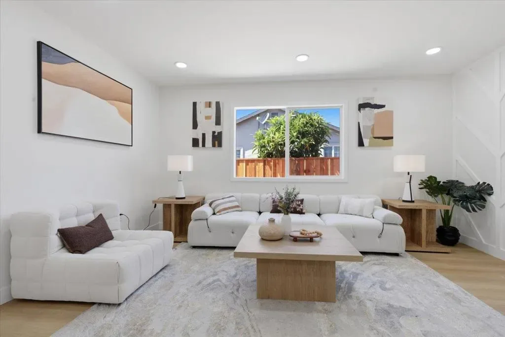 Completely renovated 3-bedroom, 2-bathroom home featuring a contemporary design and premium finishes throughout. Highlights include a one-year-old roof, new plumbing for whole house, upgraded electrical, new interior and exterior paint, new recessed lighting, new flooring, new doors, new double-pane windows and new fences. Step inside to a spacious living room with a beautiful fireplace, flowing into dining area and a family room perfect for entertaining. The open kitchen boasts sleek quartz countertops, ample cabinetry, and brand-new stainless-steel appliances. The primary suite offers a luxurious ensuite bathroom with dual sinks, a separate stall shower, and a smart toilet. Two additional bedrooms share a well-appointed bathroom, ideal for children, guests, or a home office. Step outside to a large backyard with a newly paved concrete patio and low-maintenance artificial lawn, offering excellent potential for building an ADU. A separate detached two-car garage with extra parking in driveway. Centrally located near Apple, Cisco, and Adobe, with easy access to highways 680 and 101, and downtown San Jose for shopping and dining. A must-see opportunity to own a fully upgraded home in a desirable neighborhood!
