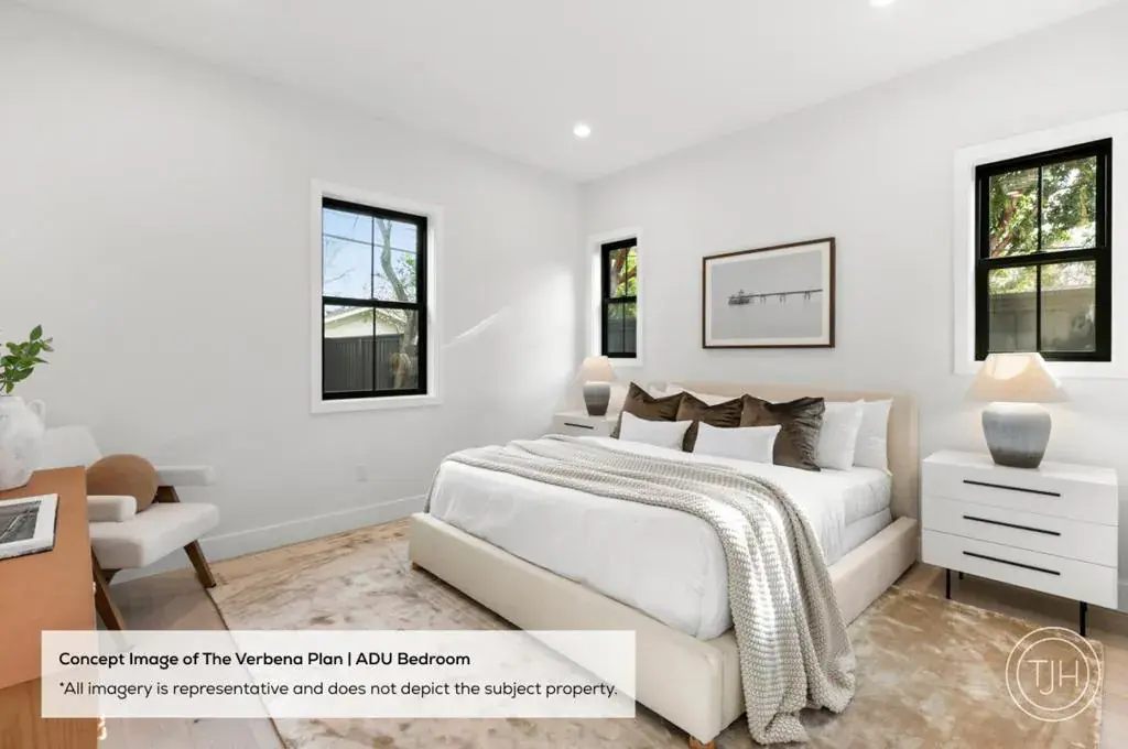 Exceptional new Thomas James Homes transitional-style residence on a quiet, tree-lined Willow Glen street with sidewalks. This home pairs timeless curb appeal with luxury finishes and bright, open living spaces designed for effortless entertaining. The main level features a spacious great room with fireplace, dining area, and a standout chefs kitchen with large center island, quartz countertops, designer lighting, walk-in pantry, breakfast nook, and premium Wolf/Sub-Zero appliances. Expansive sliding glass doors open to a covered patio, creating seamless indooroutdoor living. A first-floor private ADU with kitchenette and ensuite bath offers ideal flexibility for guests, extended family, or a home office. Upstairs includes a versatile loft, laundry room, three secondary bedrooms, and a grand primary suite with walk-in closet and spa-like bath featuring soaking tub and walk-in shower. Ideally located near top-rated schools, beloved parks, Hamilton Plaza, and just minutes to downtown Willow Glen. Buy early from Thomas James Homes to enjoy preferred pricing and design personalization. Estimated home completion is Summer 2026. *All imagery is illustrative and subject to change and does not depict the subject property.