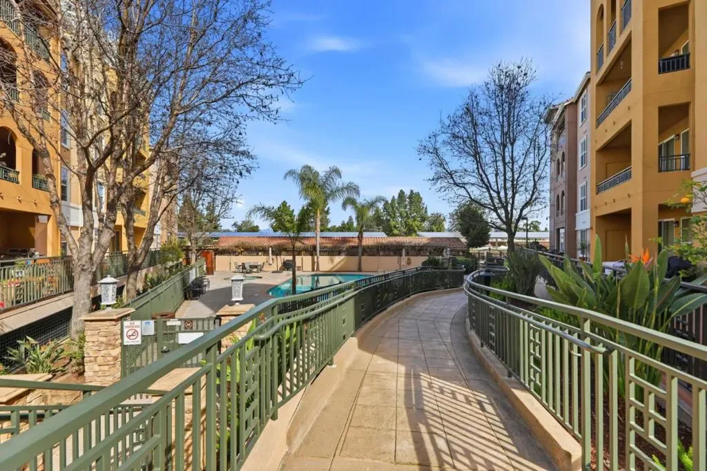 Urban Living in this gated community at Villa Fontana. Enjoy contemporary amenities in this freshly updated, 3rd floor, single level Condo. The corner unit location allows lots of natural light throughout. Built in 2009, yet shows like a newer home. Updates include: brand new S/S kitchen appliances, new vinyl plank flooring in kitchen & living areas, new carpets in bedrooms & hallway, new interior light fixtures, newly painted interior & new kitchen/bathroom cabinet handles/knobs. The open floorplan of the kitchen, dining & living areas offers easy access to the patio, great for daily living & entertaining. Spacious primary suite w/large walk-in closet. Indoor laundry closet w/ new flooring & hook-ups. Heating & Cooling provided by a heat pump w/ a remote condenser. A community pool & spa are steps away. The HOA also includes an exercise room & a community room to reserve for special gatherings. Downtown Willow Glen & San Jose are minutes away offering endless restaurants or social gathering spots & live entertainment. Conveniently located close to Highways 280 & 880 for easy access to commuting, along w/ the Fruitdale Light Rail Station a half block away. Secure underground parking garage w/ tandem spaces for 2 cars & easy elevator access direct to 3rd level. Come see today!