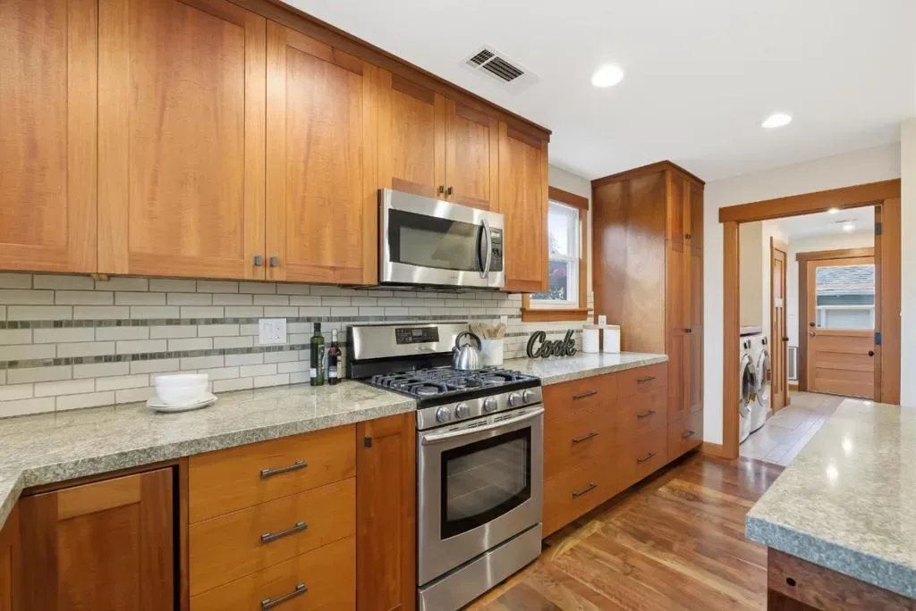 Tucked in a private pocket of the Rose Garden, this Modern Craftsman blends classic charm w/refined livability. Renovated & expanded in 2016 w/precision craftsmanship. Custom mahogany front door opens to rich interiors w/Claro walnut floors, Douglas fir doors/trim and Kolbe & Kolbe wood windows. Living room is anchored by a gas fireplace w/mahogany surround & complemented by a built-in window seat reading nook. Open-concept layout. The beautiful kitchen features custom mahogany cabinetry, granite counters, handmade Heath tile backsplash, gas 5-burner range & InstaHot coffee/tea station. Spacious upstairs primary bed w/walk-in closet & gorgeous bath w/cherry vanity, Taj Mahal quartzite counters, ceramic tile finishes & heated floors. The homes infrastructure has been extensively upgraded: electrical, plumbing, sewer/water main, gas lines, HVAC, tankless WH, central vac, water filtration system & solar. The oversized, fully insulated garage w/workshop is equipped w/gas heater & sink, expanding the homes versatility. The grounds reflect a thoughtful, California-forward approach w/native low-water landscaping, pergola patio, garden beds, orange tree & vibrant tapestry of plantings. Moments from Rose Garden Park, Santana Row & Valley Fair. Easy commute access. A wonderful opportunity.
