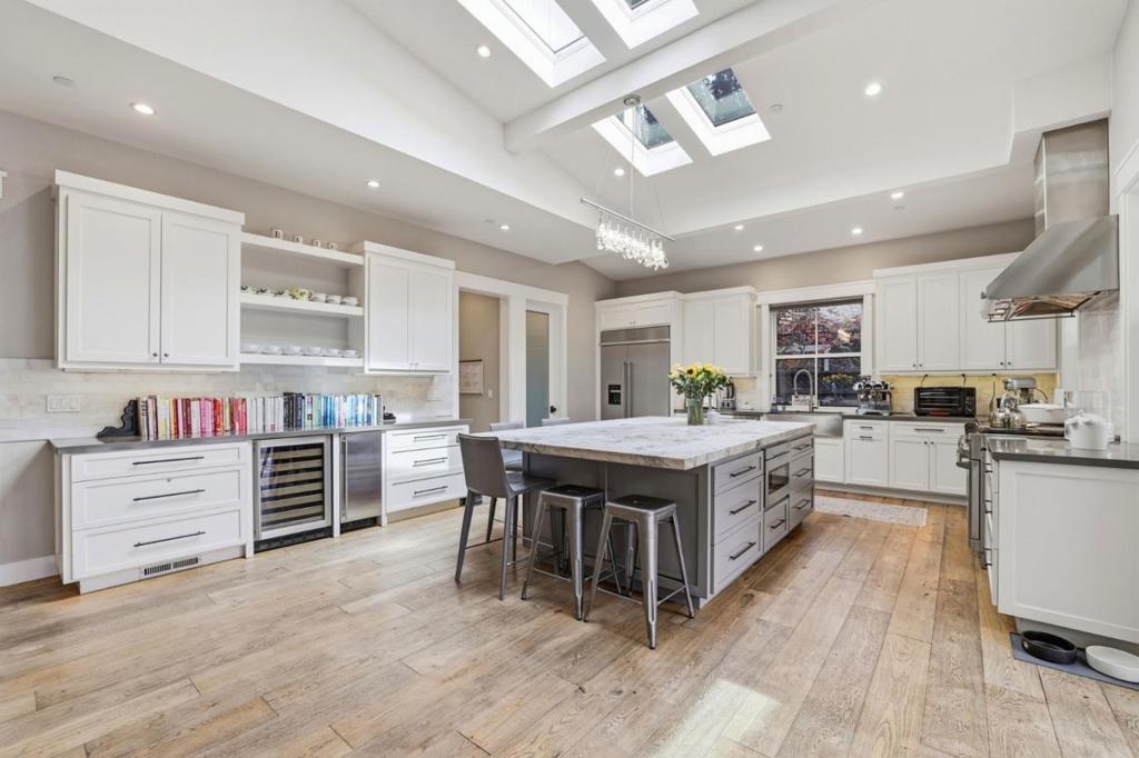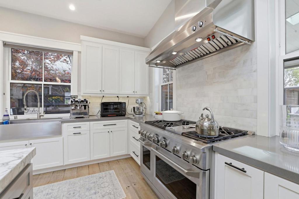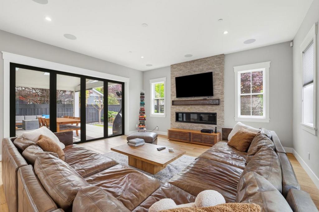 This beautiful modern farmhouse is located in one of Willow Glens great neighborhoods and features open modern design w/ 10′ and vaulted ceilings, 8′ doors, oak flooring, shaker cabinetry, large Kitchen, slab island counter and an immense great room with stacking doors opening to a covered patio with fire pit. Built by Union Pacific, one of Silicon Valley’s premier builders that is known for quality construction. This 5 Bedroom 4 Bath is stunning with many custom touches including office/den w/dual work stations, Bedroom and full bath downstairs, an Au pair en suite bedroom. Primary suite with shower and separate tub. Kitchen features professional gas range with double ovens, custo refrigerator, 2 dishwashers, wine refrigerator, and ice maker. Rear yard features outdoor BBQ Island w/gas grill,smoker, and retractable awning and a faux lawn for water savings. Energy efficiency includes Tesla solar panels with two power walls and EV charging station in garage. This home is designed for seamless indoor/outdoor entertaining taking full advantage of the California Lifestyle.