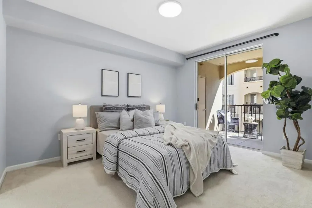 Spacious and move-in-ready, this private second-floor interior 2-bedroom, 2-bath condo in San Joses gated Sonora community offers an open, light-filled layout, a kitchen with granite countertops, stainless steel appliances, soft-close cabinetry, and a private balcony with storage. The primary suite features a walk-in closet and en suite bath, while the well-sized second bedroom is served by a full hall bath. Recent updates include newer appliances, toilets, lighting, walk-in closet organizers, and fresh touch-up paint. Additional highlights include central A/C and heating, in-unit laundry, dual-pane windows, and two assigned parking spaces in a secure gated garage. Residents enjoy resort-style amenities including a fitness center, pool, spa, clubhouse, game room, business center, BBQ area, guest suite, and landscaped walkways with fountains, while the HOA covers water and garbage. Ideally located just minutes from downtown San Jose, SJC, light rail, shopping, dining, and major tech employers such as TikTok, NVIDIA, and Google, with easy access to Highways 87, 101, and 880.