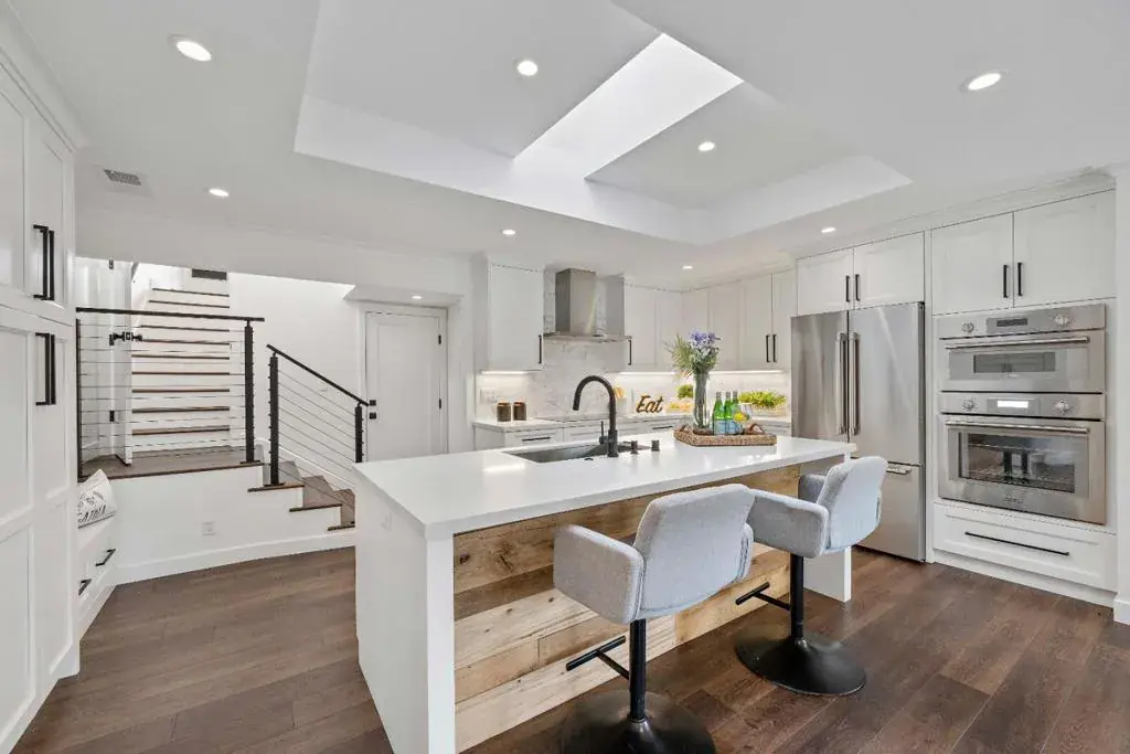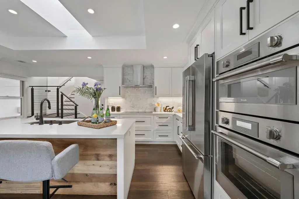 Beautifully remodeled and filled with natural light, this inviting home offers four bedrooms and three full bathrooms with a layout designed for comfort and connection. The main level features three bedrooms, including a private en-suite retreat, while two additional bedrooms share a hallway bath perfect for flexible living and guest accommodations. The heart of the home is a modern open floor plan where the kitchen, dining, and living spaces come together effortlessly, creating an ideal setting for both everyday moments and memorable gatherings. A chef-inspired kitchen showcases a large island, oversized sink, double ovens, and abundant counter space perfect for leisurely weekends and inspired cooking. Glass doors extend the living space outdoors to a charming backyard with a generous lawn and patio, offering room to relax, play, or entertain under open skies. The two-car garage includes laundry and a convenient laundry chute from the upstairs bedroom for added ease. Recently remodeled throughout, this home shines with thoughtful upgrades and refined finishes. Located within the sought-after Moreland Neighborhood Association, with nearby schools, parks, shopping, dining, entertainment, and easy access to major tech hubs, this home offers both tranquility and convenience.