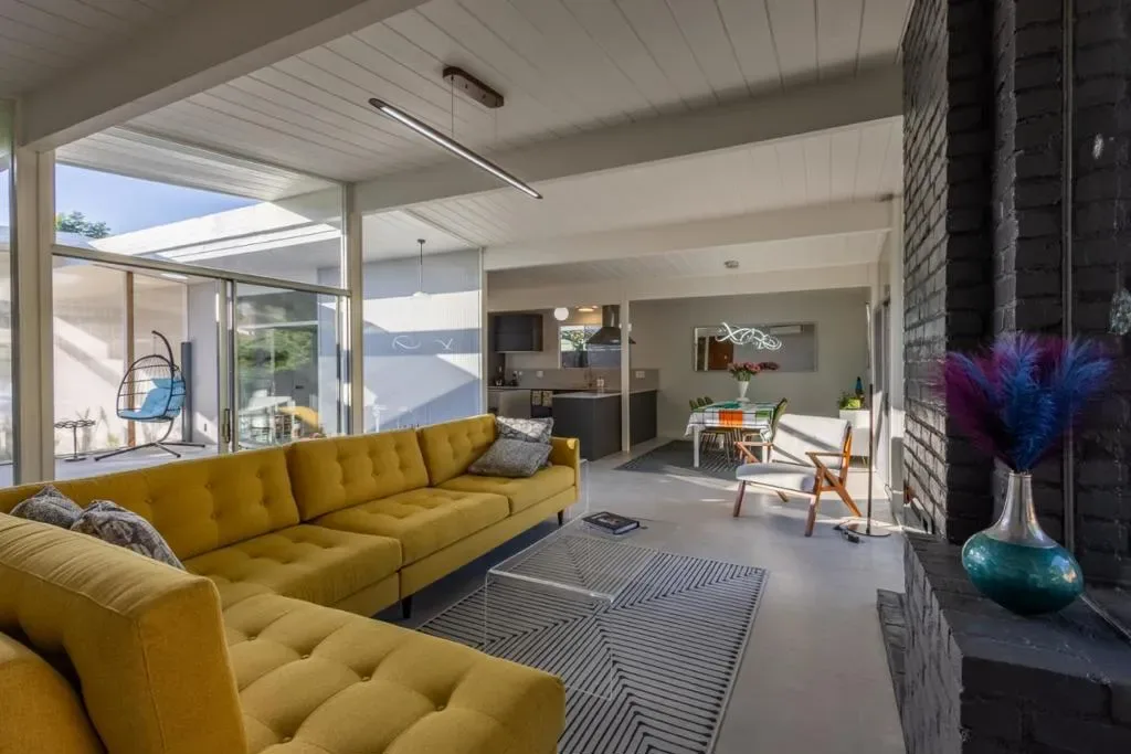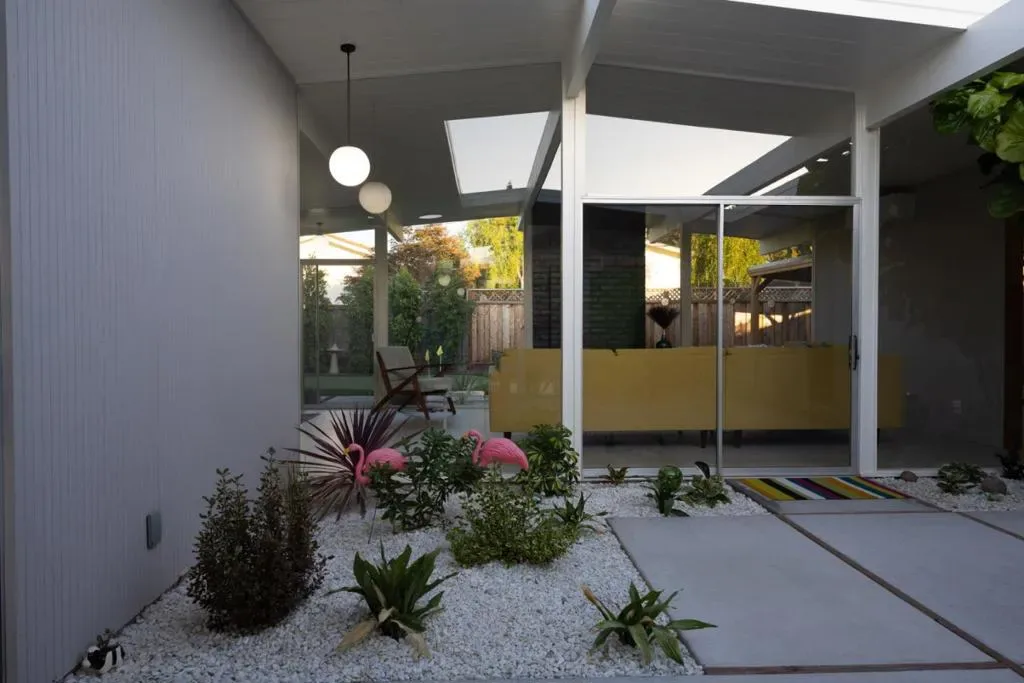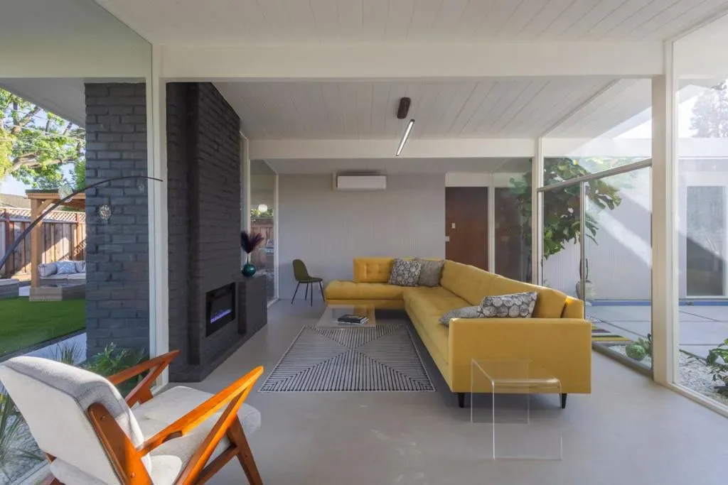 Set on a peaceful, tree-lined street in one of Willow Glens best neighborhoods, this architecturally remastered 4 bedroom/2 bathroom Eichler blends iconic mid-century design with modern sophistication. This permitted transformation features tall ceilings, custom windoes that flood the home with natural light. At the heart, a chefs kitchen boasts a 10-ft island. A new electric fireplace insert adds warmth and ambiance to the open-concept living area. Radiant-compatible flooring add rich texture, while insulation in all walls enhances comfort and soundproofing. Upgrades include 200 AMP electrical, tankless water heater, radiant heat pump, Tesla charger, and mini-splits in every room. Enjoy a spacious atrium, a tranquil front yard, and new fencing. A seamless fusion of iconic Eichler design, modern upgrades, and everyday comfort. This is Willow Glen living at its best.