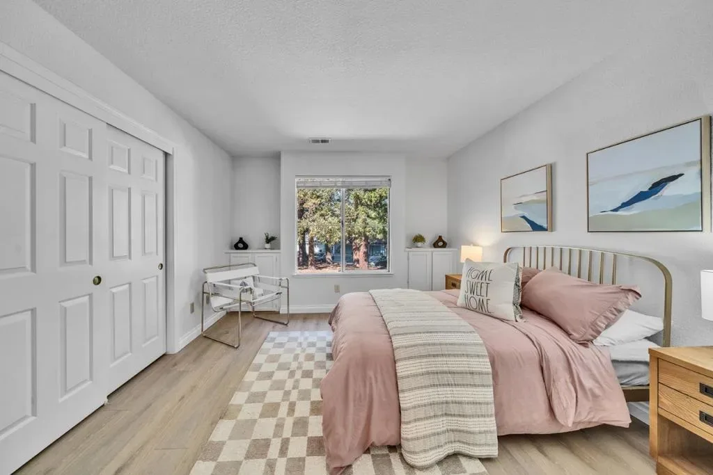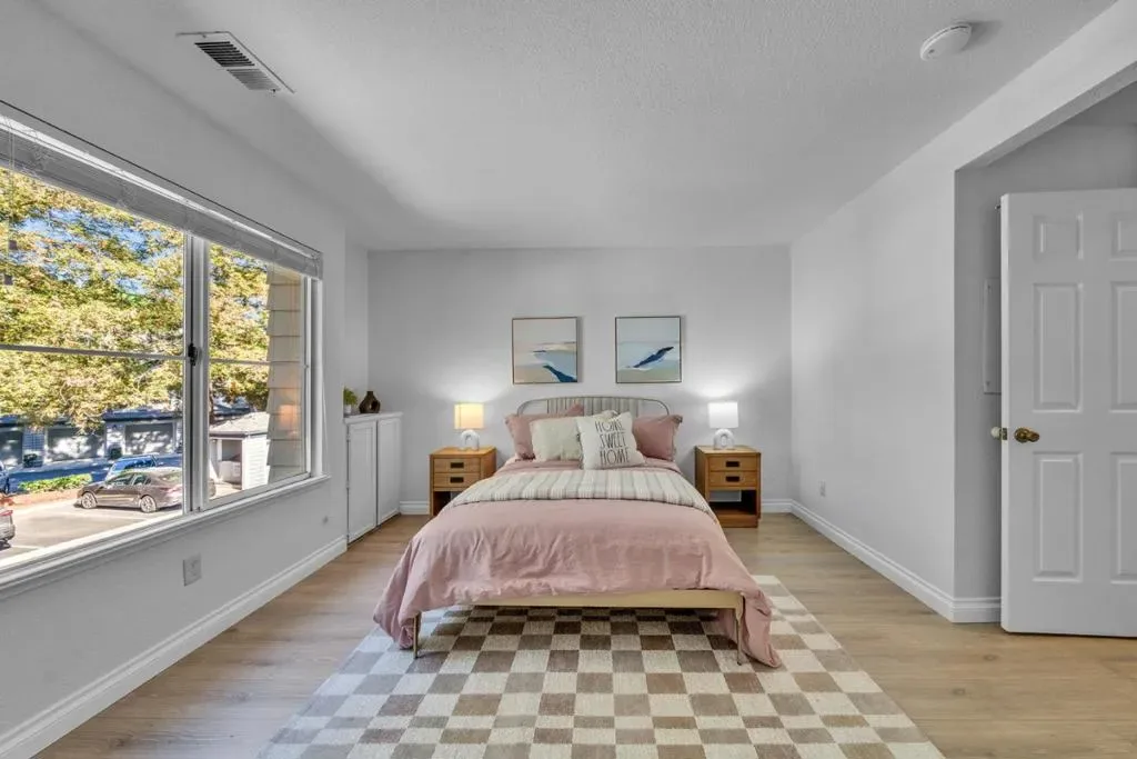Where elegance meets convenience! Nestled in North San Jose’s most sought-after location, this spacious and bright 2-bedroom, 2-bath condo offers the perfect blend of modern upgrades and tranquil living. Enjoy the serenity of a quiet location surrounded by 140 acres+ of greenery, including San Jose Municipal Golf Course and Townsend Park, with tennis courts just steps away. Step inside to discover a light-filled great room with soaring ceilings, cozy fireplace, and wood flooring. A sliding door leads to a huge balcony. Chef’s kitchen features beautiful granite countertops and stainless-steel appliances. Two generously sized bedrooms offer ample space and comfort. Primary suite boasts vaulted ceilings, his-and-hers closets, and the slider to the balcony. Plenty of storage inside the home. Other features include central heating & AC with Nest thermostat, in-unit washer & dryer, and garage with extra storage and one full-car long driveway. Rare find in the community. Community amenities elevate your lifestyle with the heated pool, spa, gym, and clubhouse. A commuter’s dream – quick access to major employers like Broadcom and Cisco. Easy access to major freeways, groceries, shops and restaurants. The nearby BART station makes commuting to the greater Bay Area a breeze.