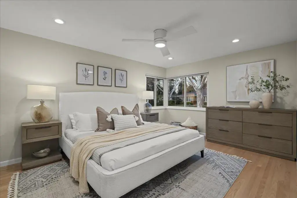 Coveted Willow Glen living in the heart of the highly sought-after Booksin Elementary School neighborhood. This beautifully updated single-level home sits on an expansive 10,010 sq.ft. lot, just a short walk to downtown Willow Glen shops, dining, and parks. Offering 1,986 sq.ft. of living space, 4 bedrooms plus a den/office perfect to utilize for remote work, 2-car attached garage 400 sq.ft., and an impressive 664 sq.ft. workshop, this property blends comfort, function, and flexibility. Light-filled formal entry, hardwood floors, recessed lighting, and a warm living room with wood-burning fireplace with tile hearth create an inviting atmosphere. The remodeled 2025 kitchen features granite countertops, white shaker cabinetry with soft-close drawers, chevron tile backsplash, new tile floors, and premium GE Profile appliances. Spacious laundry room also updated in 2025 with folding station, cabinetry, and exterior access. Recent seller upgrades include new interior paint and new appliances 2025. New A/C, water heater, lighting, refinished floors, EV-ready 240v outlet, finished and insulated garage in 2023. Enjoy a covered patio, dining and lounge area, mature orange tree, and private backyard retreat.A rare opportunity in one of Willow Glens most desirable locations.