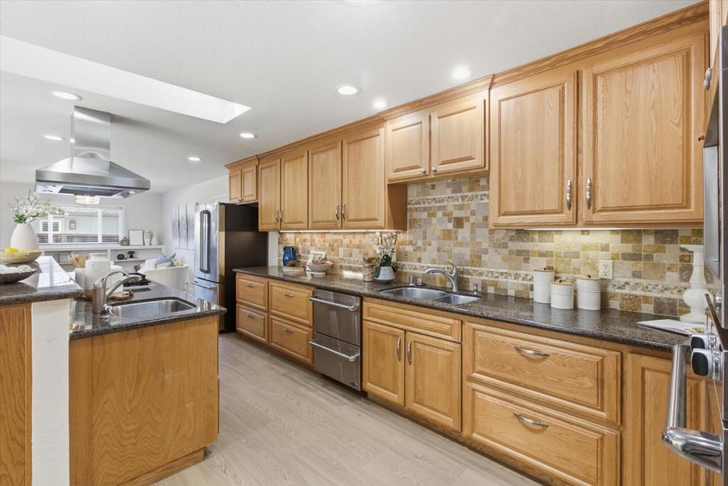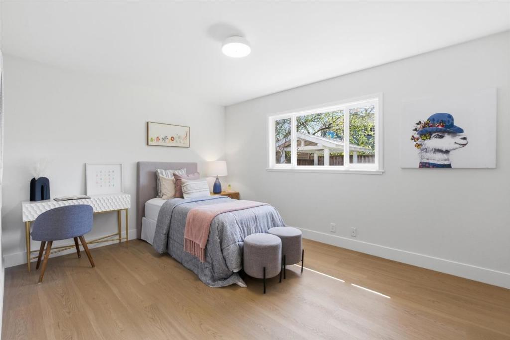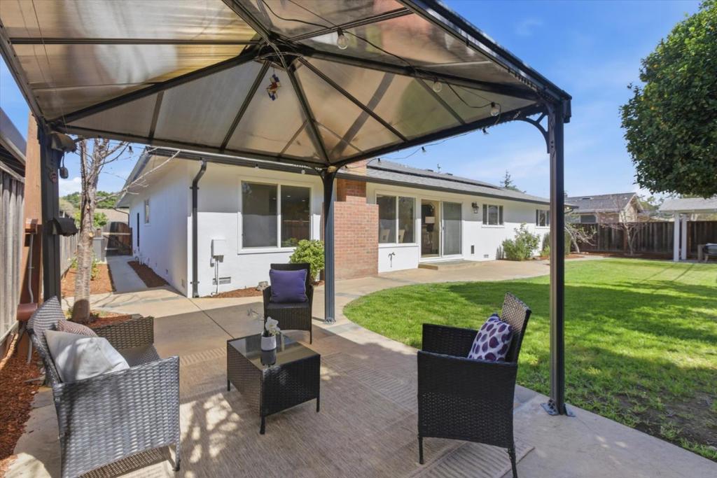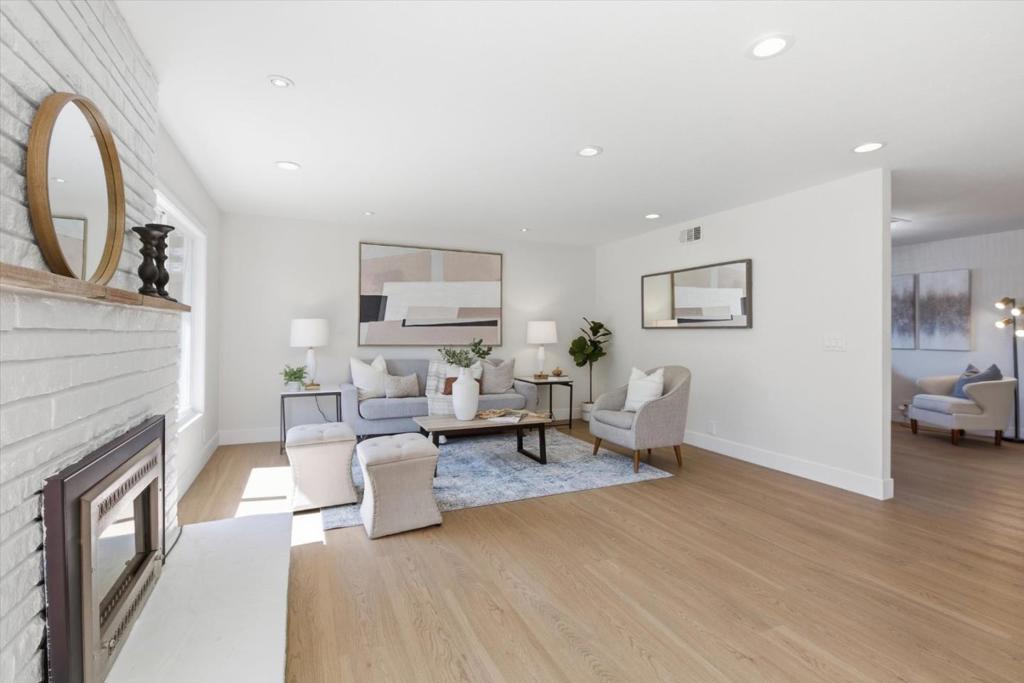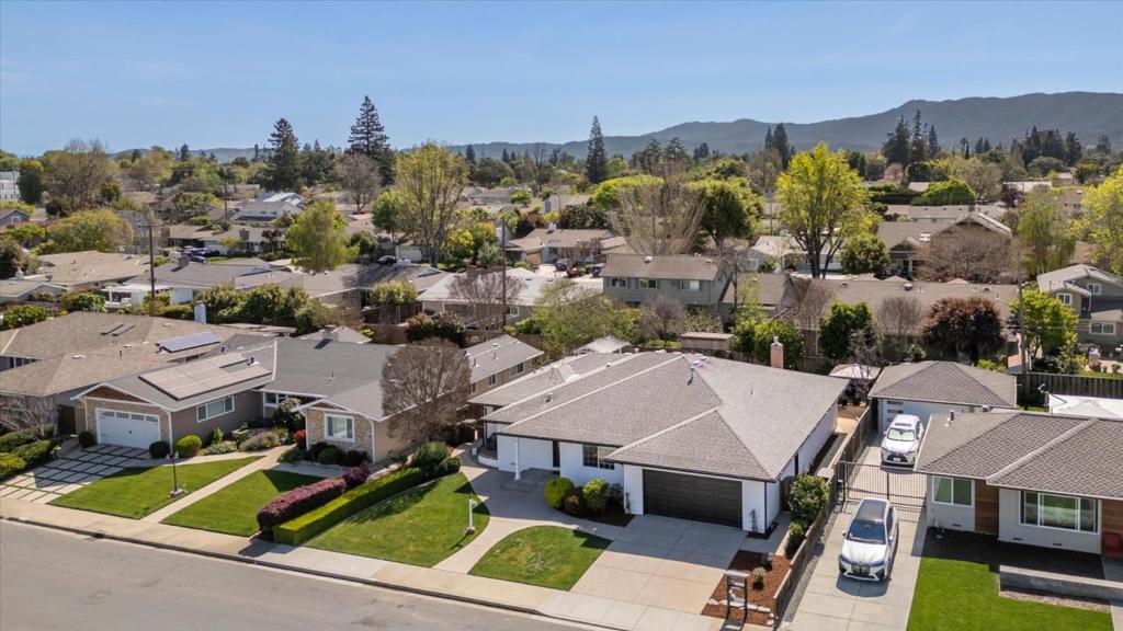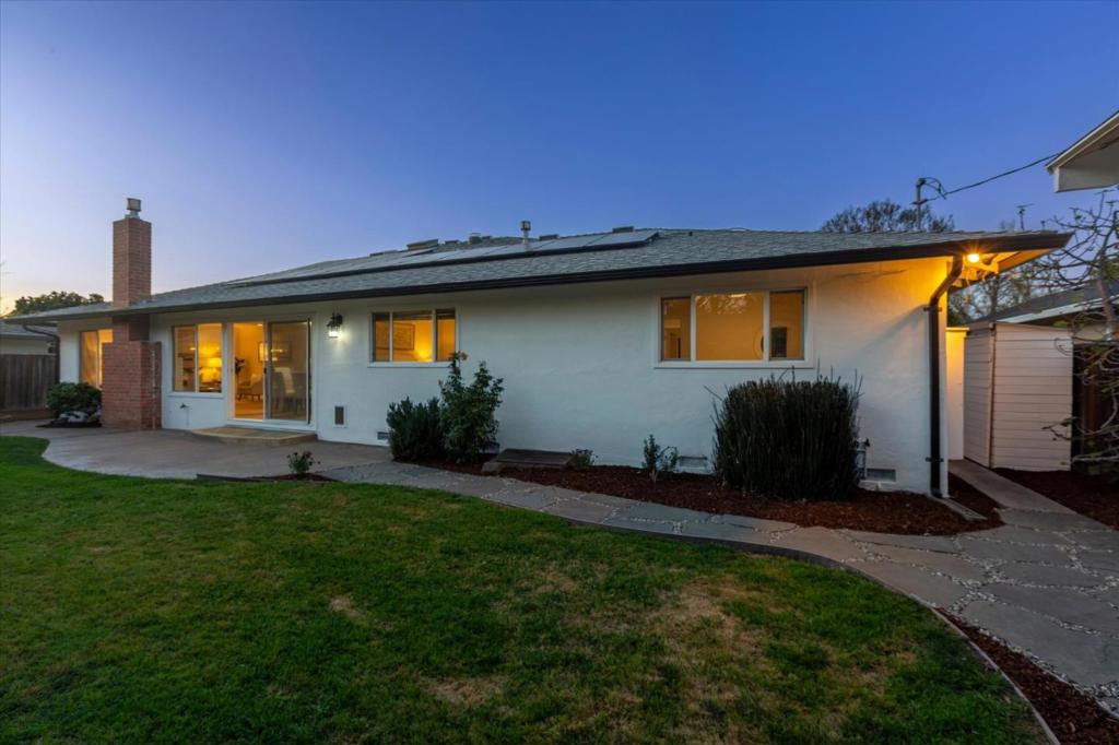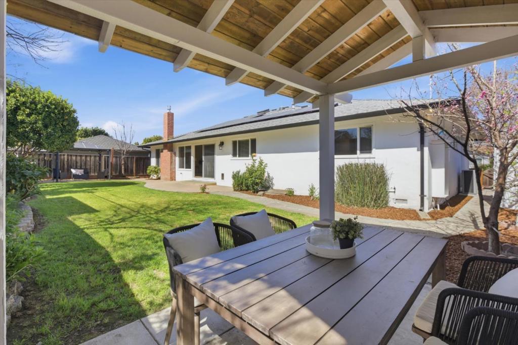 Stunning Custom 4 Bedroom Willow Glen Residence, Gracefully Unfolding Across a Single Level. An exceptional walkable lifestyle with coffee, dining, fitness, trails, shopping & grocery just moments away. This expansive floor plan is designed for effortless open-concept living & entertaining. Spacious chef’s kitchen boasts a large center island with breakfast bar seating, rich wood cabinetry, granite counters, stainless steel appliances, a gas cooktop, a built-in oven, a double-drawer dishwasher, and generous pantry storage. The kitchen seamlessly overlooks a light-filled dining area and two adjoining living spaces, creating a natural hub for gathering. Relax & unwind in the luxurious primary retreat, featuring a walk-in closet & a spa-inspired ensuite bath with dual vanities, a walk-in shower, & a private water closet. Each bedroom is generously sized, offering comfort & flexibility for family, guests, or a home office. Owned solar provides energy-efficient living. Features include an attached 2-car garage, dual-pane windows, central heating & AC, gleaming wood-like plank floors, remodeled baths, & recessed lighting. Spacious, flower-filled yards offer two pergola-covered outdoor lounges-perfect for relaxing or entertaining. Walk to lively Pruneyard and downtown Willow Glen!