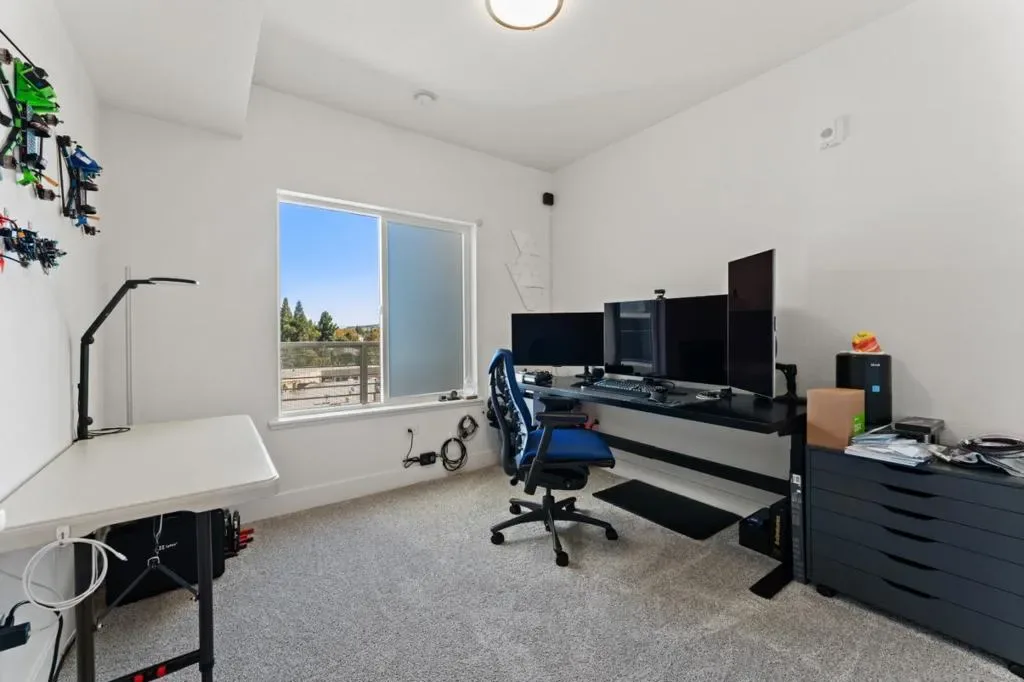 Welcome to this top-floor corner residence at Almaden Terrace. With 1,067 square feet, this 2-bedroom, 2-bath home offers an open layout filled with natural light and comfortable living space. The home has been thoughtfully upgraded with over $25,000 in improvements, including a modern kitchen backsplash, upgraded fixtures and appliances, Radiant Retreat carpeting in the bedrooms, high-speed fiber internet, refrigerator, dishwasher, and automatic blackout blinds in the primary bedroom for added privacy and restful sleep. Everyday convenience is built in, with an in-unit washer and dryer, two assigned parking spaces in a secure garage, and your own personal 208V EV charging space with electricity included at no additional cost. The building is elevator-served and fully ADA compliant for ease of access throughout the community. Step outside to a private 68 sq. ft. balcony with foothill views, or enjoy the community amenities including a heated pool, spa, fitness center, and outdoor courtyard with BBQ areas. Located near Willow Glen with convenient access to Highways 87 and 280. Served by San Jose Unified schools. Move-in ready and well maintained, this home offers a comfortable and upgraded living experience within Almaden Terrace.