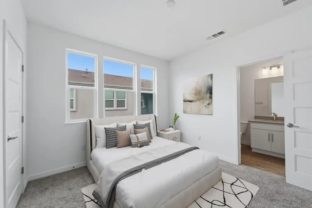 Welcome to this charming townhome located in the vibrant Berryessa area with low HOA! Experience contemporary living in this stylish townhome, expertly crafted by the renowned Pulte Homes. Finished in June 2018, this 1,667 sq ft 3 bed, 3 bath over 3 floors. Open plan living room, dining & kitchen. Kitchen has upgraded white slab cabinets, upgraded hardware & upgraded quartz counters & stainless steel appliances. Second floor has upgraded laminate flooring with LVT plank in all baths. laminate flooring in Master, carpet in the 2nd bedroom and hallway. large washer/dryer closet on 3rd floor. Master bed has a large walk-in & balcony, dual sinks in the master bath, and a walk-in shower. 2 car tandem with storage. LED lighting, A/C with fresh air fan, tankless water heater & more. Over $20,000 worth of builder upgrades. Conveniently located in between HW101, 680 & 880 & NEW BERRYESSA BART station ,with a Google shuttle stop right in front of the community. Shopping and dining are just minutes away with Costco, Hmart,99 Ranch, and Sprouts nearby. It’s also close to Stratford and Challenger schools, making it perfect for families. Don’t miss the opportunity to make this beautiful home yours!
