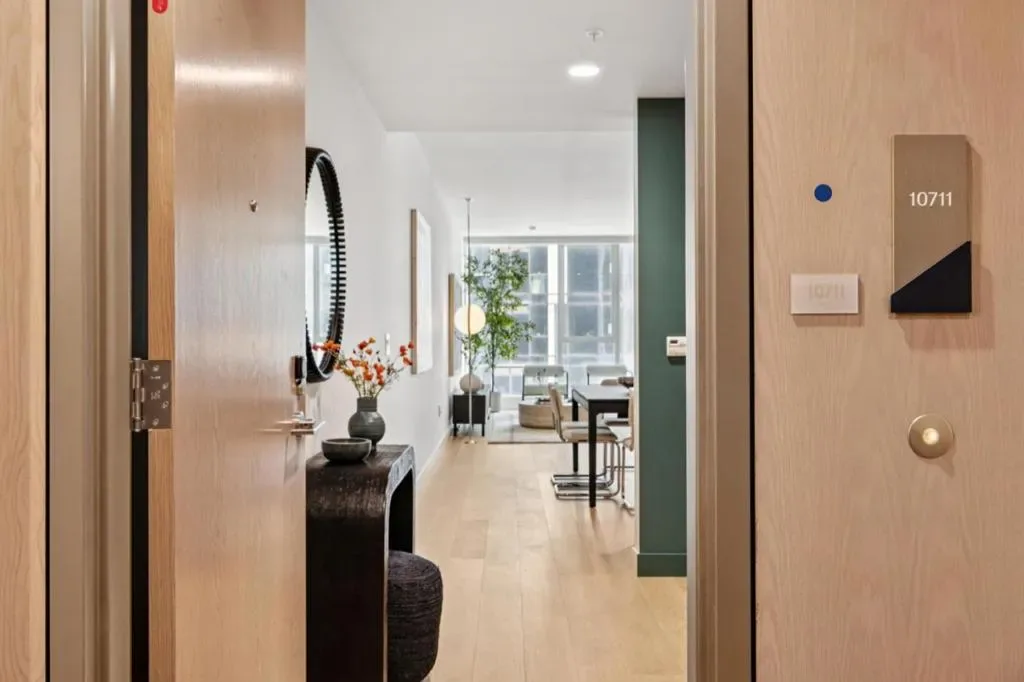 Welcome to an elevated living experience at 188 West Saint James. This 1,048 square foot 3rd floor residence features a desirable one-bedroom plus den floor plan that prioritizes both style and functionality. The heart of the home is the open concept living space and chef’s kitchen, complete with a professional Bertazzoni gas range. The living area opens to your private outdoor space overlooking the pool, creating a seamless connection to the outdoors that is rare in urban living. The versatile den is a standout feature, offering the perfect dimensions for a sleek home office or an immersive gamer’s enclave. As a resident of this luxury tower, you have access to some of the finest amenities in downtown San Jose. The building features an attended lobby, a sprawling 75′ lap pool and hot tub, and outdoor grilling areas perfect for weekend gatherings. Wellness enthusiasts will appreciate the indoor-outdoor fitness center, while the owners’ lounge and chef’s demo kitchen provide a sophisticated venue for hosting. Private and communal workspaces offer a quiet environment for focus, completing this comprehensive luxury package. Photos are of a model home and are representative of the homes layout and finishes.