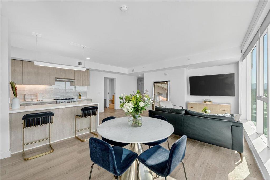 Elevate your lifestyle with this stunning 11th-floor 2-bed, 2-bath condo at the sought-after 188 West Saint James. Perched above the city, this home is filled with natural light and offers sweeping northwest views of treetops, rolling hills, and glowing sunsets. Enjoy a spacious, open-concept layout with wide-plank hardwood floors, a modern gas kitchen with quartz countertops, and premium stainless steel appliances. The primary suite features a walk-in closet and luxurious en-suite bath with dual vanities. A second bedroom and full bath offer flexibility for guests, a home office, or roommates. In-unit laundry, central A/C, and secure garage parking complete the home. Just steps to San Pedro Squares cafes, restaurants, and nightlife, and minutes to SAP Center, Adobe HQ, and SJC Airport. Commuting is easy with access to Caltrain, BART, and highways 87, 280, and 101. Enjoy resort-style amenities including a fitness center, lap pool, concierge, resident lounge, and more. Whether you’re entertaining or unwinding, this home offers the perfect balance of luxury, comfort, and connectivity.