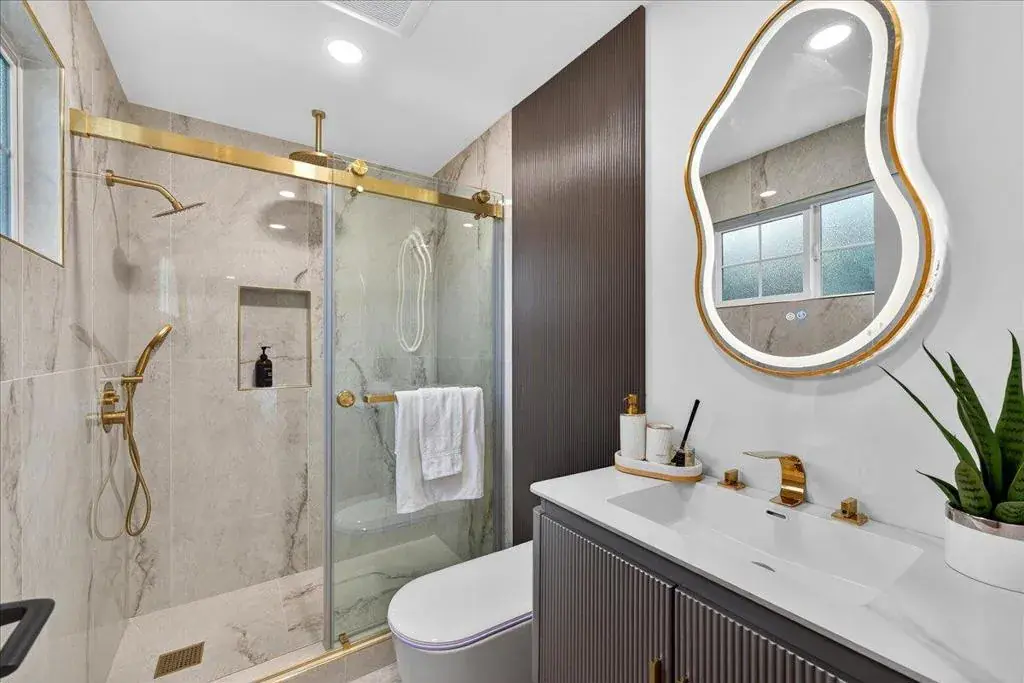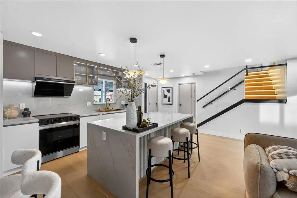 Fully rebuilt 4 bed / 3 bath home offering approx. 1,560 sq ft of modern living on a 5,828 sq ft lot in the desirable Cambrian neighborhood of San Jose, served by top-rated schools. This home blends high-end design with real functionality: iron-steel smart front door, Level 5 smooth drywall, glass staircase with sensor lighting, and a builder-custom kitchen featuring crystal quartz countertops and smart, built-in storage. Behind the walls, enjoy peace of mind with new smart electrical, plumbing, and HVAC systems. Bedrooms feature bamboo charcoal wall panels for improved air quality, while spa-inspired bathrooms showcase wood veneer vanities and Taj Mahal porcelain tile. A thoughtfully reimagined home built for modern living and long-term value.