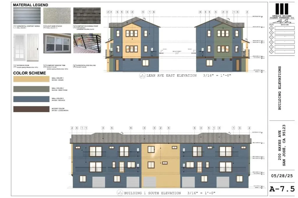 Located in a convenient South San Jose neighborhood with access to local schools and nearby shopping and transportation, 200 Hayes Ave offers a well-positioned residential development opportunity. The project proposes 11 townhome units across two three-story buildings (5 units in one building and 6 units in the other) arranged around a private internal drive aisle with individual garage access. The architectural and site plans have been prepared, and the project is ready for planning hearing, presenting a near-term development opportunity in a high-demand housing market.