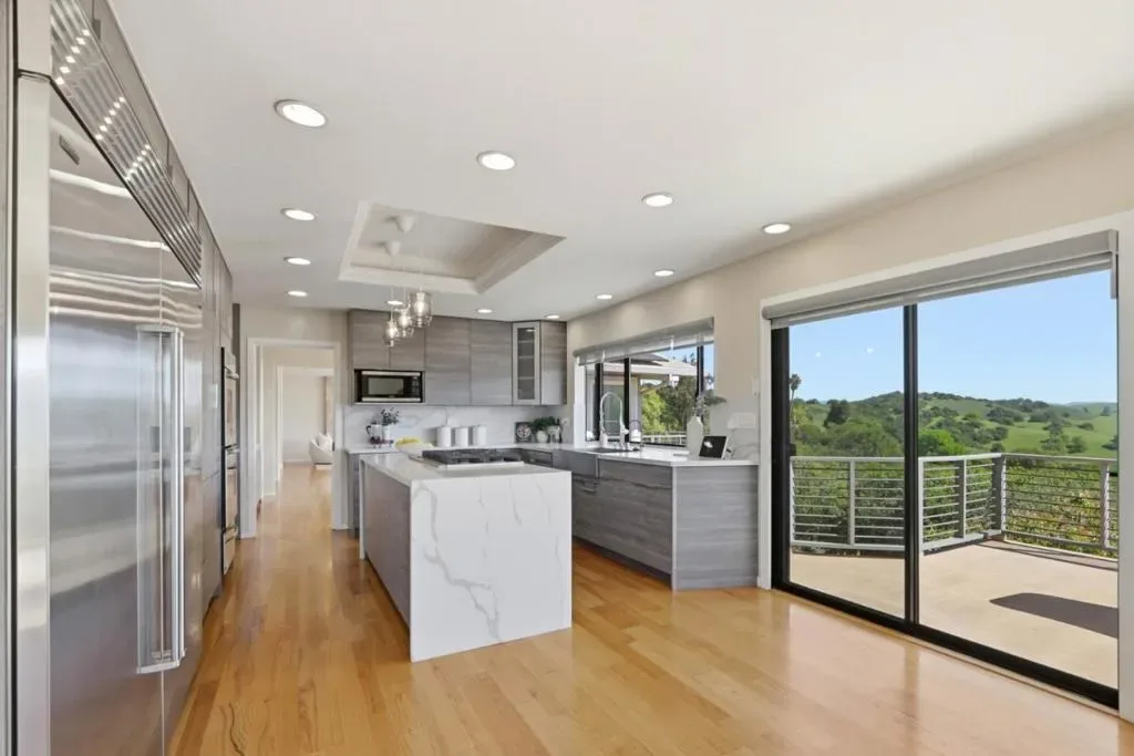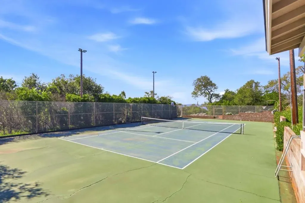 The most spectacular views in all of Almaden Valley! This extraordinary gated estate offers a rare combination of luxury, privacy, and resort-inspired living in a truly breathtaking setting. Five bedrooms, 3.5 baths, 4389sf on 2.3acres with pool, tennis court, walking trail, water fall feature and workout room. Additional full bath in cabana. Lots of outdoor spaces to entertain or just relax and enjoy the views. You can also split the lot and build a second home. The ground floor bedroom does not have a closet but has space to install one. Magnificent living room, where soaring vaulted ceilings, recessed lighting, integrated speakers, and floor-to-ceiling windows with transoms frame breathtaking views. Beautifully appointed chefs kitchen, showcasing sleek Foresta European-style cabinetry, quartz slab countertops and backsplash, and a full wall of additional cabinetry for exceptional storage. Premium stainless appliances include a Sub-Zero side-by-side refrigerator and freezer, Thermador double ovens with a warming drawer and a Viking six-burner gas cooktop set within a dramatic quartz waterfall-edge island. Outdoors, the resort-style grounds create a private oasis designed for both grand entertaining and peaceful retreat. Schools: Graystone, Bret Harte, Leland.