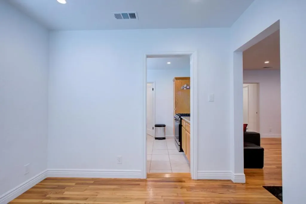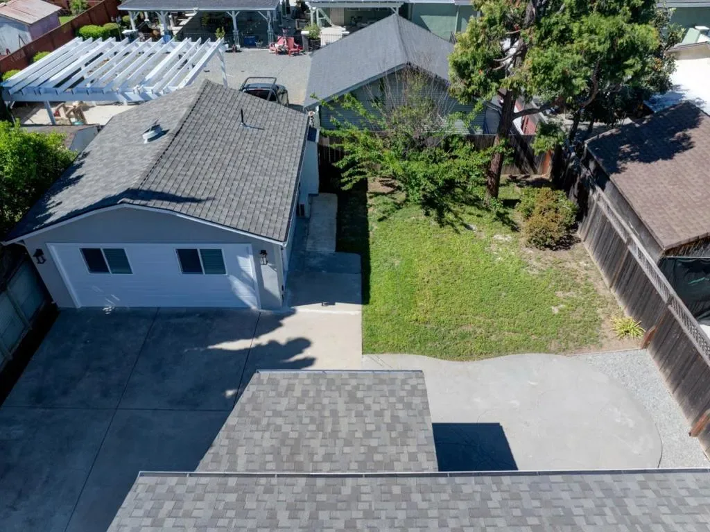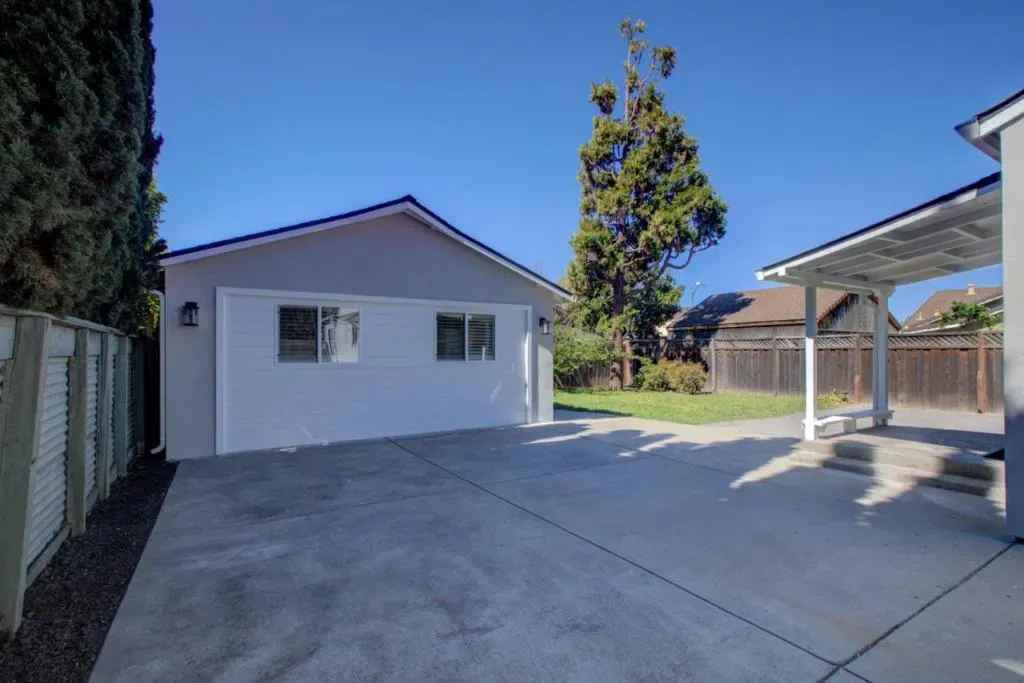 Located in San Jose, this charming 3-bedroom, 2.5-bath home offers 962 square feet of comfortable and inviting living space. The interior features beautiful hardwood flooring throughout, creating a warm and cohesive atmosphere. The living room showcases a cozy fireplace, perfect for relaxing or entertaining guests, while a formal dining area provides an ideal setting for meals and gatherings. The home is equipped with central forced air heating and air conditioning, ensuring year-round comfort. Conveniently situated within the Alum Rock Union Elementary School District, close to shopping, dining, and major amenities. It offers comfort and accessibility. The spacious backyard provides plenty of room for outdoor entertaining, gardening, or relaxation. There is no traditional car garage. However, the parallel driveway offers ample parking for multiple vehicles and potential RV access. The original garage structure has been thoughtfully converted into a versatile bonus space, currently modeled as a primary suite and exercise area, with a full bathroom, walk-in closet, laundry/utility space, and its own mini-split system, creating a comfortable private retreat. This conversion adds approximately 400 square feet of additional functional living space beyond the main home.