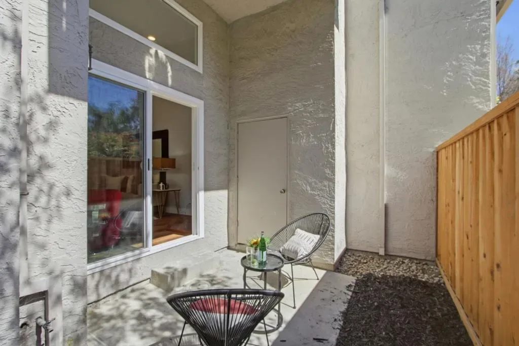 Beautifully updated 2 bed, 2 bath condo in the desirable Sunburst community! This light-filled home features soaring ceilings, a stylish gas fireplace, and seamless indoor-outdoor living with both a private patio and balcony. Enjoy a modern kitchen, updated flooring, dual-pane windows, and gorgeous remodeled bathrooms with designer finishes. The spacious primary suite offers a spa-like walk-in shower, while the second bedroom is perfect for guests or a home office. Additional highlights include in-unit laundry, central A/C, and an oversized 1-car garage + extra parkinga rare advantage in the community. Relax with peaceful greenbelt and pool views in this quiet, low-traffic location. HOA amenities include pool & spa in a park-like setting. Prime location near shopping, dining & commuter routes. Assigned to highly regarded Cambrian schools, including Branham High School