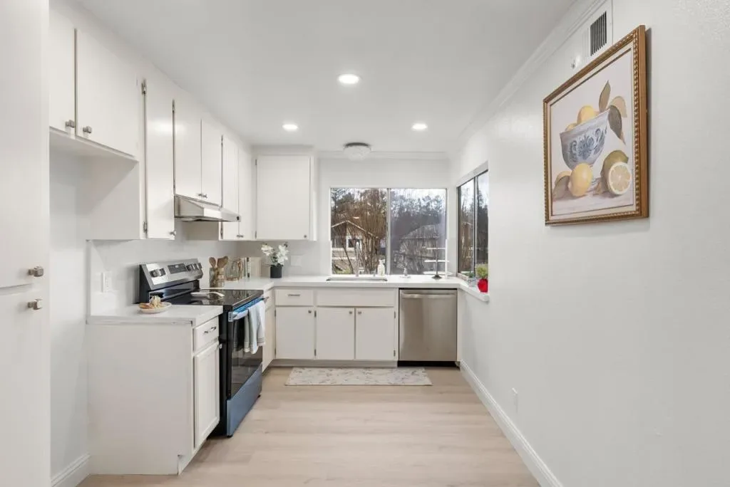 This stunning upstairs townhouse-style condo offers the perfect blend of comfort and convenience. With no neighbors above or below, you’ll enjoy privacy in this spacious 2-bedroom, 1-bathroom home. Freshly painted, with new LED can lights throughout and new flooring, the condo features a cozy kitchen with new appliances and countertops. The home also includes a 1-car garage, additional parking, and access to community amenities such as a swimming pool and children’s playground. The surrounding landscape is beautifully maintained with Redwood trees, pet-friendly, offering peaceful walkways and greenery for relaxation after a long day. Located near Coyote Creek Community Garden, the trail, the community library, Happy Hollow Park, and the Japanese Friendship Garden, this condo is perfect for those who appreciate nature and outdoor activities. Plus, with Costco, Walmart, schools, and public transportation nearby, you’ll have everything you need within reach. Commuters will love the easy access to Highways 101, 680, and 280