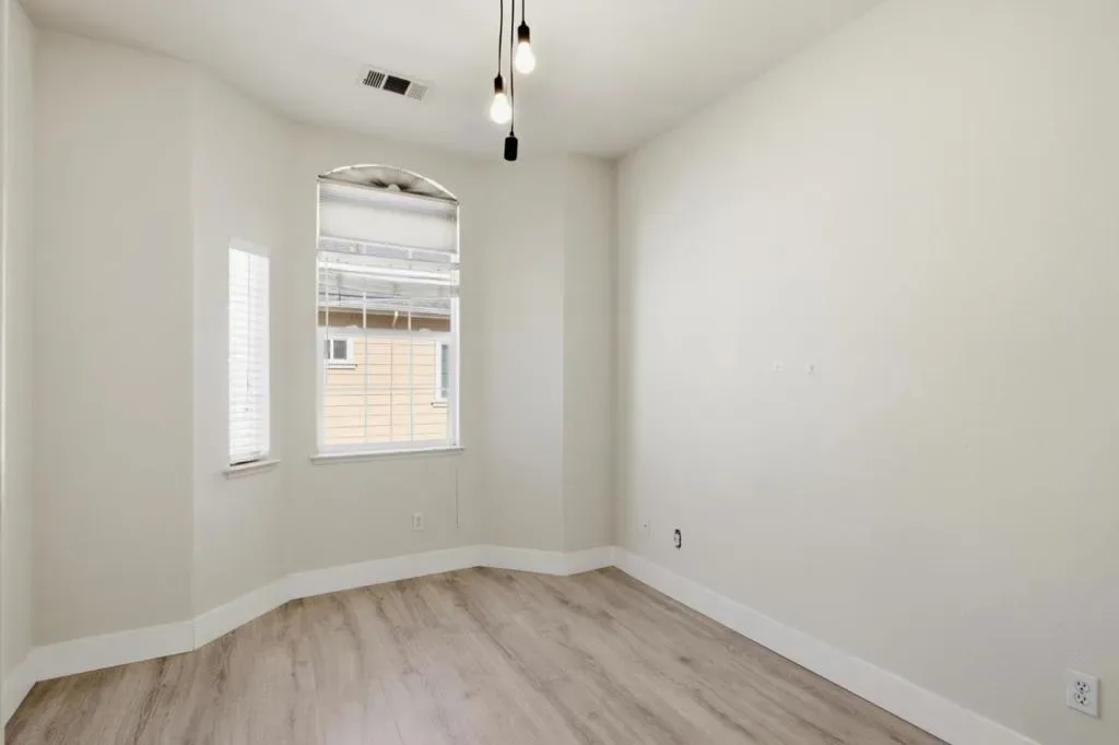 Welcome to a charming home located in the vibrant city. This residence offers 1,091 sq ft of comfortable living space, featuring 2 bedrooms and 2 full bathrooms, each with a shower and tub combination. The master bedroom is complete with a walk-in closet, providing ample storage. The kitchen is well-equipped with a 220-volt outlet, sleek countertops, an oven range, and a refrigerator, making it perfect for cooking enthusiasts. The eat-in kitchen offers a cozy dining space. The home is designed with high ceilings and a blend of carpet and hardwood flooring, adding to its appeal. Relax in front of the fireplace, ensuring warmth during cooler months. For convenience, the laundry area is located on the upper floor and includes electricity hookup (220V), a washer, and a dryer. This home falls within the Alum Rock Union Elementary School District. Additional amenities include central AC for cooling and central forced air heating. A single-car garage provides secure parking. Don’t miss this opportunity to own a delightful home with these wonderful features.