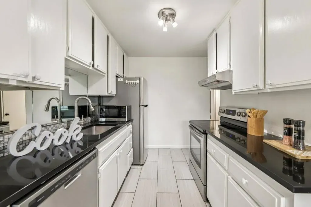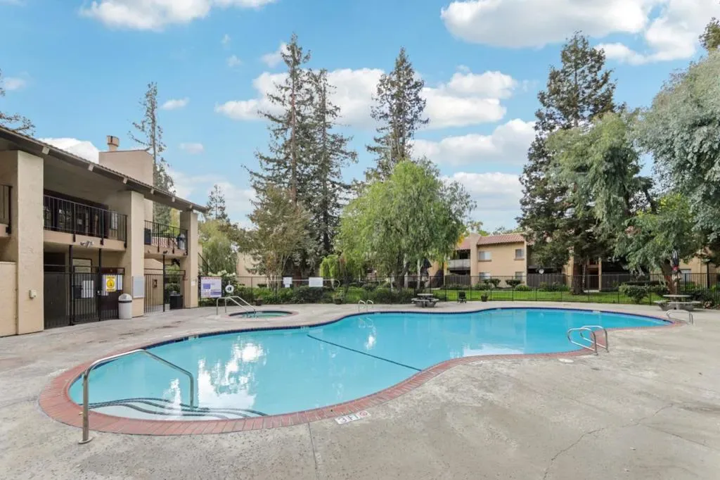 Welcome to Mission Grove, a desirable gated community offering comfort, convenience, and modern living perfect for first-time buyers or investors! This beautifully updated upper-level end unit features 2 bedrooms and 2 baths with fresh interior paint and stylish chair rail detailing, central A/C with Nest thermostat, and an inviting open floor plan filled with natural light. Enjoy a spacious living room that flows seamlessly to the dining area with custom built-in cabinetry and a modern kitchen with stainless steel appliances and sink, and freshly painted cabinets. The primary suite features a stylishly modern bath with a walk-in shower, while the private balcony provides the perfect spot to relax and unwind. Community amenities include a pool, gym, clubhouse, gated security, and low HOA coverage for water, trash, landscaping, and exterior maintenance. Prime San Jose location close to highways 680 & 101, BART, light rail, parks, shopping, and dining move-in ready and not to be missed!