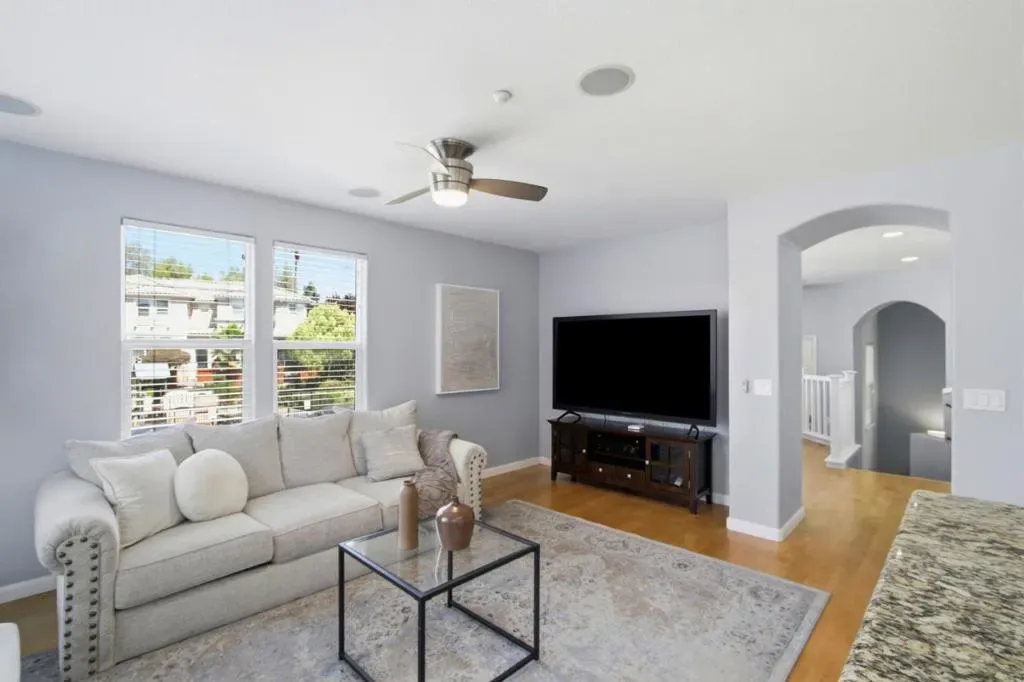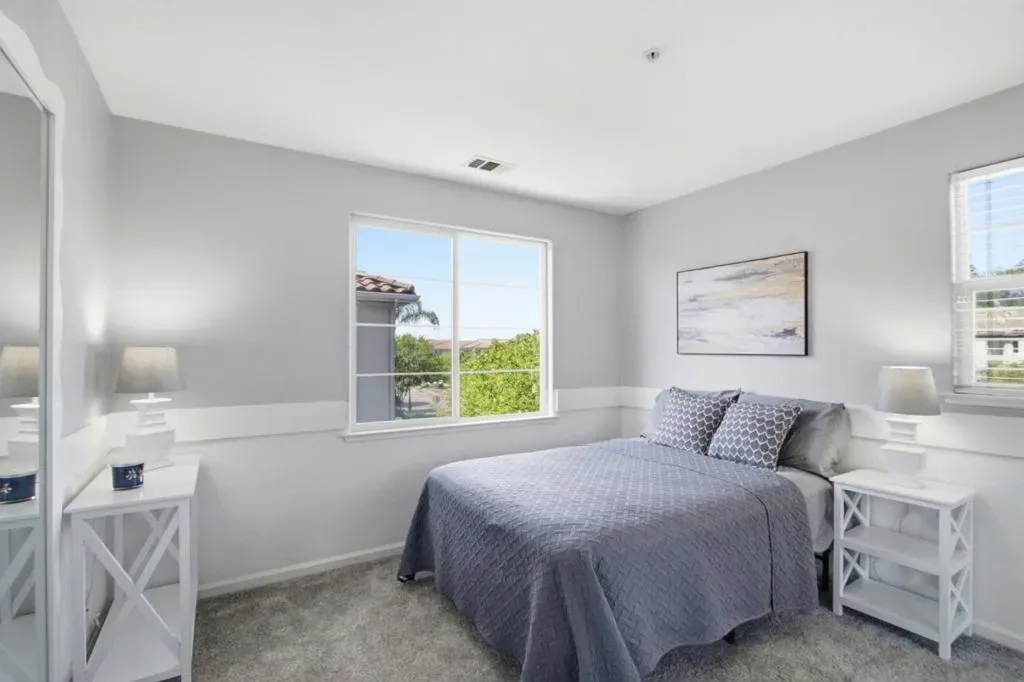 Welcome to this beautifully maintained townhouse in the highly desirable Bella Villagio community! This light-filled home offers stunning views, abundant natural light, and a thoughtfully designed open floor plan perfect for modern living. The bright and airy layout features a spacious living room with soaring ceilings, a cozy fireplace, and a formal dining area that gives the home a single-family feel. The kitchen seamlessly opens to the family room, creating an ideal space for entertaining, and is equipped with white cabinetry, granite countertops, and stainless steel appliances. The luxurious primary suite includes a walk-in closet, dual vanities, an oversized soaking tub, and a separate shower. Additional highlights include generously sized bedrooms, an upstairs laundry area, and an attached two-car garage with extra storage space. Enjoy outdoor living on the private front patio perfect for BBQs and relaxing. End unit with enormous price. The HOA covers water and offers fantastic amenities, including a pool, spa, clubhouse, and playground. Conveniently located near major highways (87, 280, 85, and 101) and close to shopping and dining, this home combines comfort, style, and an unbeatable location.