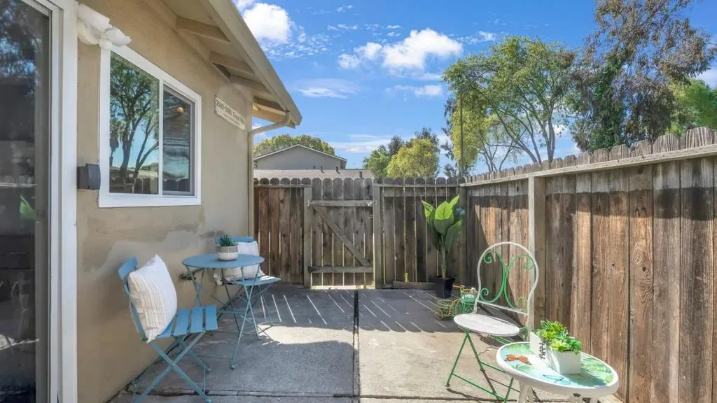 Move-in ready end-unit townhouse with abundant natural light and a private patio, in the heart of Silicon Valley! Well maintained 2 bedrooms & 1 full bathroom home offering comfortable living space, well located in a quieter area of the community yet only minutes from highway access. This bright home features high ceiling in the living room and large windows creating an open & airy feel throughout. New recessed lightings throughout. Kitchen comes with a brand new stove & dishwasher, exhaust hood, refrigerator, microwave, ample cabinet storage, and sliding glass door that opens to a private patio. End-unit location offers extra privacy with a large open greenbelt in front, giving the home a bright and welcoming setting. Two assigned parking spaces conveniently located right next to the house. Washer/dryer hookups inside. Low monthly HOA covers water, landscaping, exterior maintenance, roof, exterior painting and insurance. Convenient location close to restaurants, shopping and daily essentials, with quick access to Hwy 101. Own a piece of the Bay Area at an affordable price!