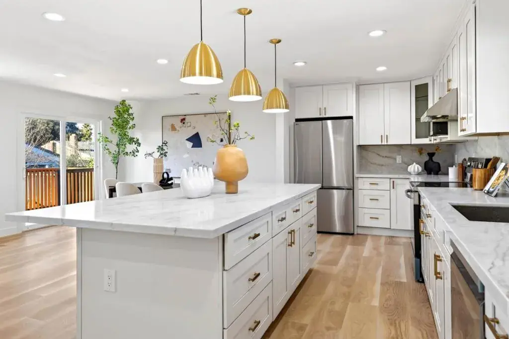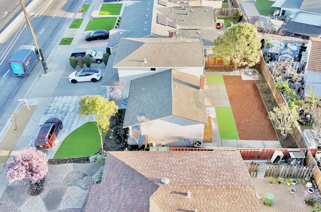 A RARE blend of modern luxury and flexibility, this beautifully reimagined 4-bedroom, 3-bath home is designed for effortless living, entertaining, and working from home. The chef-inspired kitchen features an oversized island, quartz countertops, new appliances, and custom cabinetry, opening to a bright living space with a contemporary electric fireplace. The main-level bedroom offers sliding doors with direct backyard access and a private full bath, ideal for guests, multi-generational living, or a home office. Upstairs, a skylight above the stairway fills the hallway with natural light, leading to a serene primary suite with walk-in closet and ensuite bath, plus two additional bedrooms and a full hall bathroom. Enjoy peace of mind with brand-new HVAC, Water heater, Dual-pane windows, and Energy-efficient LED lighting throughout. Low-maintenance front and backyards with artificial grass complement an expansive backyard with proposed ADU drawings or space for a private Pickleball court. A spacious front yard provides parking for up to five cars plus a 2-car garage. Location ideally suited for a home-based business and conveniently located near shopping, dining, a Buddhist temple, and Los Lagos Golf Course. This home delivers comfort, convenience, and endless possibility.