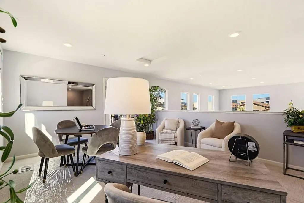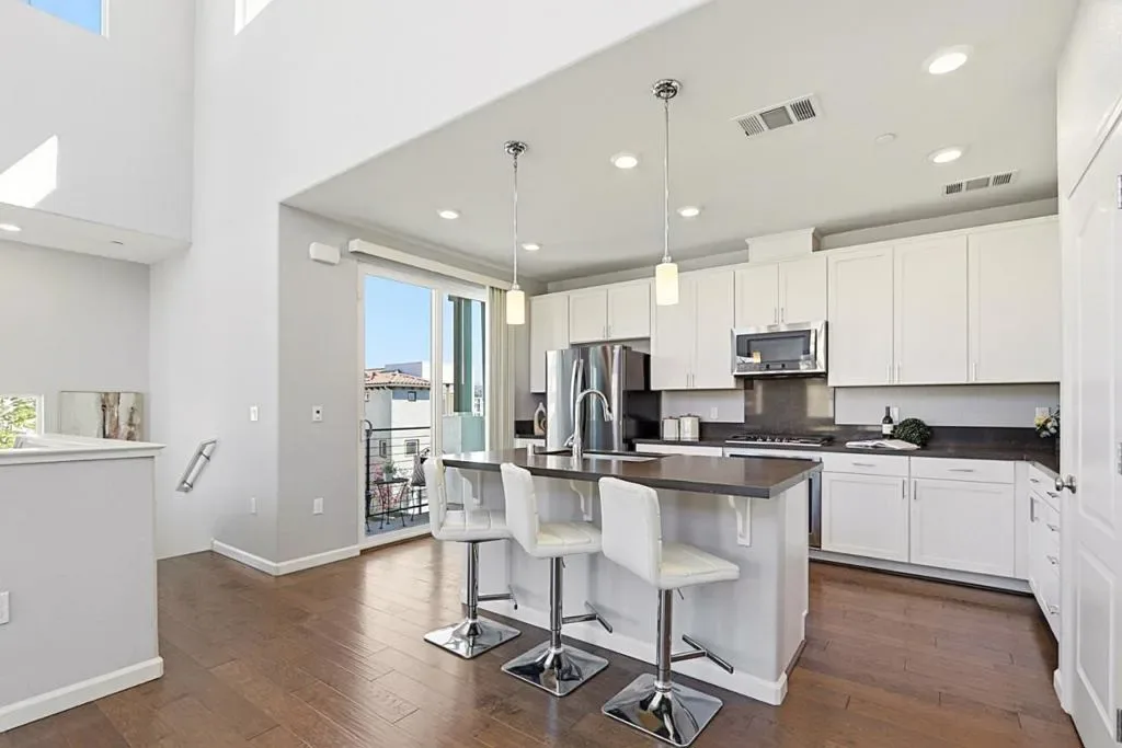 Prime Hilltop Location in Communication Hills with Stunning Views. Perched at a scenic lookout point, beautifully designed upper-level home, modern living, privacy & comfort. Bright, open-concept layout, abundant natural light, multiple double-pane windows. 2 bedr/2 bath + versatile loft (ideal as 3rd bedr/office /gym). Approx.1905sf, dramatic double-height ceilings(20+ft), built 2017. Attached 2-car garage/extra space, EV charger. Fresh interior paint, new carpet throughout. Hardwood floor in main living areas & hallway. Spacious great room/soaring ceilings. Bonus loft perfect for work-from-home/gym/game. Upgraded kitchen featuring white cabinetry, roll-out drawers, sleek countertops, stainless steel appliances, gas cooktop, large island, bar seating & pantry. 3 private balconies off the kitchen, dining & loft. Indoor laundry, XL washer & gas dryer. Smart thermostat A/C, water softener & tankless water heater. Contemporary bathrooms in primary suite, dual-sink vanity, walk-in closet. Just steps to William Manly Park, playground & scenic trails. HOA included Garbage, Exterior, Roof. Just Minutes to Downtown San Jose & Willow Glen. Easy commute to major Silicon Valley tech campuses. Easy access to Hwy 101, 85, 87, 280, VTA & Caltrain. Close to shops, dining & everyday amenities