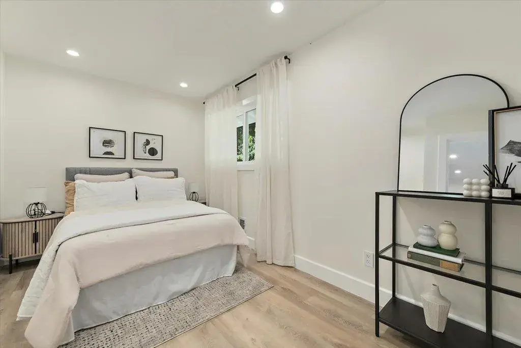 Discover luxury living in the prestigious San Jose Country Club neighborhood! This gorgeous single story 4-bedroom, 3-bathroom contemporary masterpiece was professionally remodeled in 2022. No detail overlooked, all-new plumbing, electrical, framing, sheetrock, double-pane windows, and HVAC system. Step inside to an open, light-filled interior featuring level-four smooth textured walls and durable, waterproof wide-plank SPC luxury vinyl flooring throughout. The home is fully wired for whole-house audio entertainment and advanced security, blending modern technology with sleek design. The European-style gourmet kitchen boasts premium cabinets, elegant countertops, and high-end finishesperfect for the discerning chef. Entertain effortlessly in the expansive backyard, thoughtfully designed for outdoor gatherings and relaxation. Retreat to the oversized primary suite, a true sanctuary with a spa-inspired bathroom showcasing double sinks, a standalone soaking tub, designer stall shower, and an enormous walk-in closet exceeding 120 sq ft. Additional conveniences include a dedicated indoor laundry room. Move-in ready and impeccably upgraded, this home offers the ultimate in contemporary comfort and sophistication in one of San Jose’s most desirable enclaves.