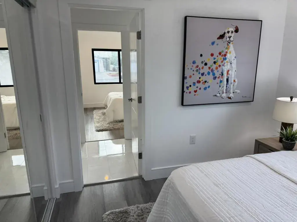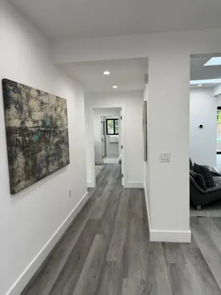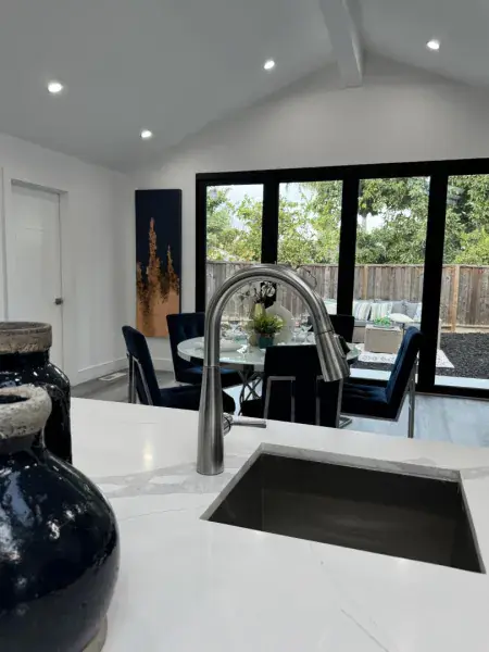 This completely reimagined 3-bedroom, 3-bathroom home has been remodeled down-to-the-studs which expanded by 650 permitted SF showcases a seamless blend of modern luxury and thoughtful design. Everything is new. High-end upgrades and designer finishes throughout, a truly turnkey and move-in ready. At the heart of the home is a chef’s kitchen that boasts vaulted ceilings and multiple skylights, flooding the space with natural light. A massive center island anchors the kitchen, which is outfitted with top-of-the-line Thermador appliances, including a built-in refrigerator, commercial-grade 6-burners gas range, microwave, and dedicated wine and beverage fridges perfect for entertaining or everyday gourmet cooking. A dramatic 16-foot, 4-panel folding patio door that opens completely to the spacious backyard, creating the ideal setting for indoor-outdoor living and entertaining. Sleek, flat Venetian-style wall finishes, all-new modern bathrooms, a new HVAC system, inside laundry area. The home also features a brand-new roof, smooth stucco exterior, Milgard windows, and fully insulated walls. A whole-house water softener and tank less water heater. An upgraded 200-amp electrical panel and 2 EV chargers in the garage. Stylish, functional, and perfectly located in a peaceful cul-de-sac.