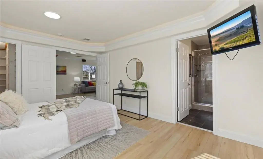 Stunning Cambrian home in a highly desirable, family-friendly neighborhood with top-rated schools: Sartorette Elementary, Price Middle, and Branham High. Boasting exceptional curb appeal with a landscaped front yard and inviting patio, this spacious 5-bedroom, 3-bath residence offers the ideal blend of comfort and modern updates. A grand entry with soaring vaulted ceilings welcomes you inside, where newly refinished hardwood floors, fresh interior paint, and abundant natural light create a warm and elegant atmosphere. The thoughtfully designed floor plan includes two bedrooms and a full bathroom on the main level, perfect for guests or extended family. The remodeled kitchen features stainless steel appliances, recessed lighting, and flows seamlessly into the formal dining and living areas, complete with a cozy gas fireplace. Upstairs, the spacious primary suite offers a private retreat with a beautifully updated bathroom, tile shower, modern vanity, and walk-in closet. A large bonus living room with a kitchen provides flexible space for a playroom, media room, or family hangout. Additional bedrooms are generously sized, including a unique split-level layout ideal for sharing. The generous backyard is perfect for entertaining and kids play.
