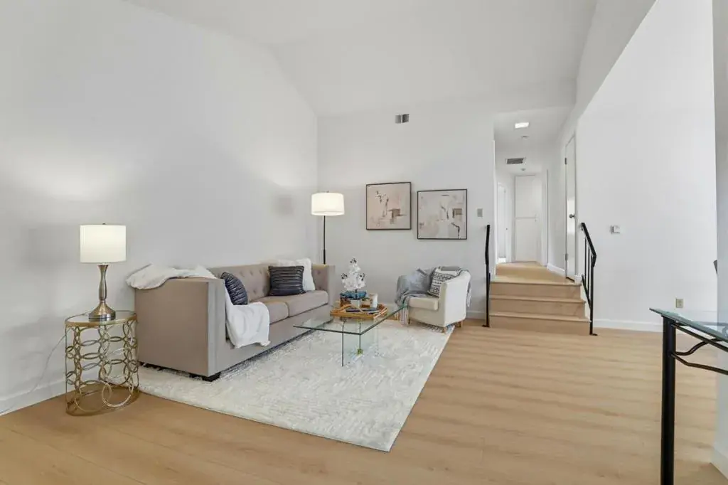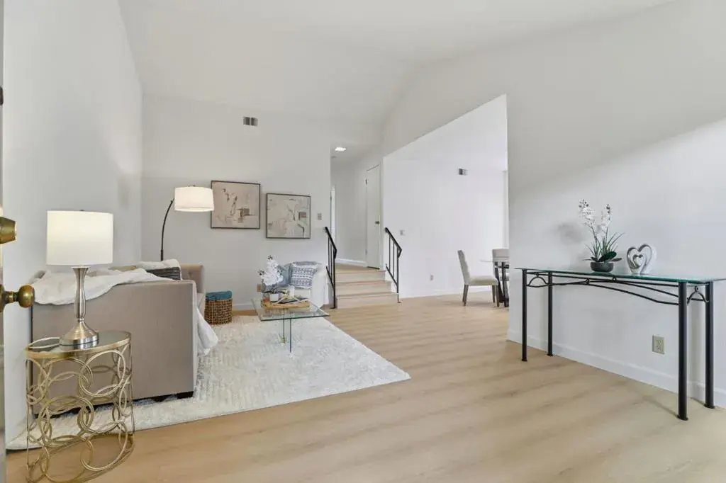 Experience the perfect blend of modern comfort and urban convenience in this rare 3-bedroom, 2-bathroom end-unit condo. The spacious living room welcomes you with a soaring vaulted ceiling and abundant natural light, creating a genuinely open and airy atmosphere. The interior features brand new flooring, fresh paint throughout, and a modern kitchen with new quartz countertops and appliances. Enjoy the convenience of in-unit laundry, a private 2-car garage, a community pool, and low HOA dues. The central location puts you minutes from San Jose State University, the SAP Center, and a diverse hub of dining and culture. With easy access to the 101, 87, and 85 freeways, this is an excellent opportunity to own a spacious, turn-key home that keeps all of Silicon Valley within reach. This residence qualifies for a specialized community program featuring a low 3% down payment, no monthly PMI, and significant lender credits toward closing costs.
