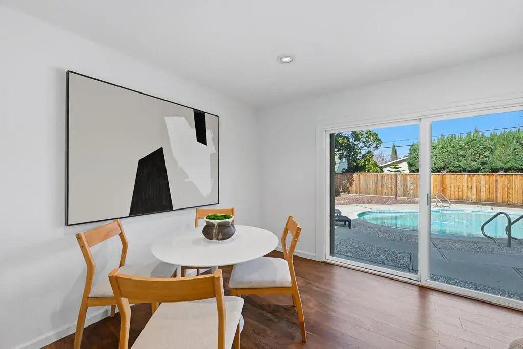 Welcome to this beautifully updated and maintained home in a prime location where pride of ownership shines. Spacious bedrooms and all newly installed flooring create a fresh, modern feel, while the inviting living area features a cozy fireplace with gas insert. A central HVAC system and brand-new water heater (2025) provide year-round comfort. The remodeled eat-in kitchen (2017) blends style and function with granite countertops, custom cabinetry, a Viking gas range, and 8-foot breakfast bar, complemented by tastefully remodeled bathrooms. The low-maintenance backyard offers a sparkling pool, a Japanese Yuzu tree, and palm trees in both front and back yards, creating a serene, resort-like setting. Ideally located just 8 minutes to Apple Park and 12 minutes to Nvidia, with easy access to Lawrence and San Tomas Expressways, walking distance to the library, close to multiple grocery stores, a future Costco 5 minutes away, and near Westfield Valley Fair, Santana Row, Westgate Center, and the future T&T Asian grocery. Excellent education options nearby include Harker, Stratford, Challenger, Action Day, and highly regarded Discovery Charter School (DCS), a top-rated public charter school that draws buyers to the neighborhood for its strong lottery advantage tied to local residency.