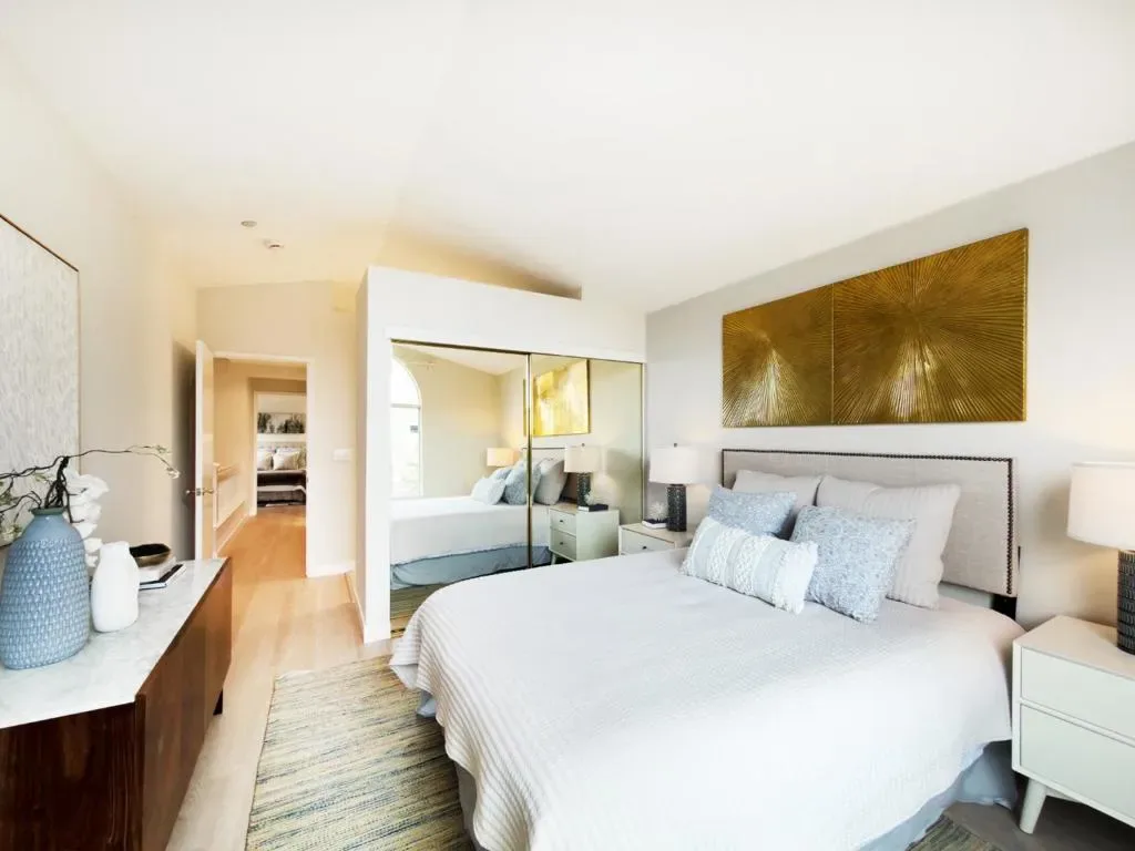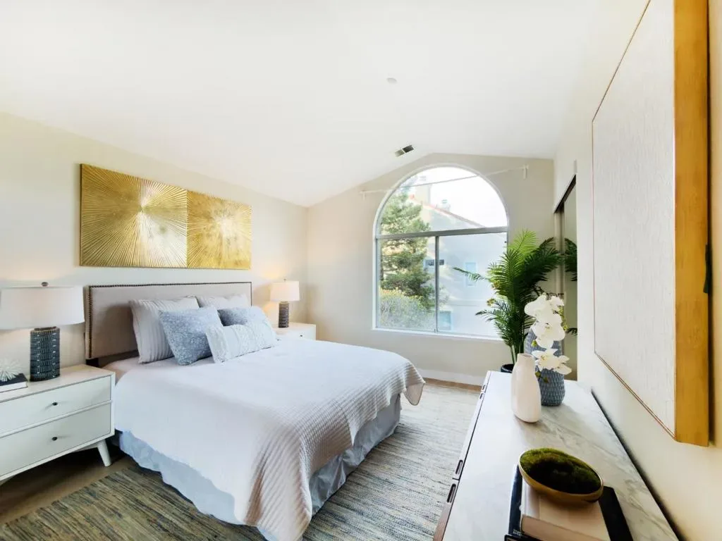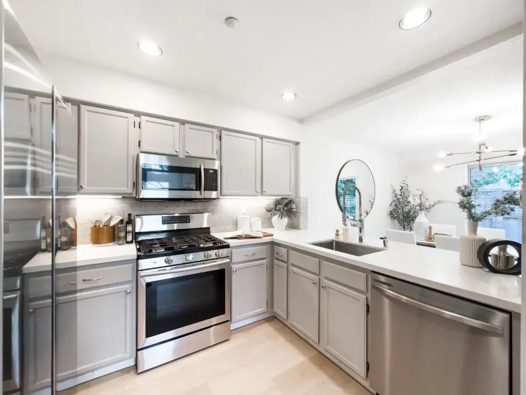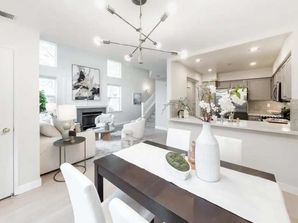 A stunning, updated end-unit townhouse in a prime location close to high tech employers. Open, light-filled floor plans with high ceilings and large windows. One bedroom and bath on the ground level. New flooring throughout. Attached garage and two parking permits. A private landscaped patio, perfect for entertaining. Located in the center of the community, quiet and surrounded by plenty of parking spaces. A gorgeous club house with a pool, walking distance to restaurants, light rail, parks and Levis Stadium. Great commuter location – centrally located between 101 and 880 near 237. Welcome home!