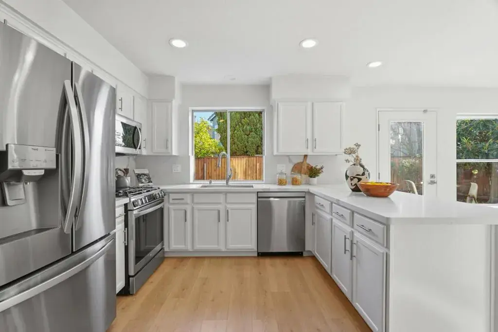 This beautiful 1,417-square-foot single-family home, built in 1996 and located in the 95134 of San Jose, offers 3 bed and 2.5 bath in an exceptional location and condition. The open floor plan is filled with abundant natural light, showcases stylish flooring and vaulted ceilings in the main living area and primary suite. The chefs kitchen is well appointed with quartz slab countertops, LED recessed lighting, new dishwasher, and newer appliances. A spacious dining area features direct access to the backyard, complemented by a convenient first-floor powder room. Upstairs, the bright and spacious primary suite boasts vaulted ceilings, a walk-in closet, and a primary bathroom with dual vanities. The generously sized, low-maintenance backyard is ideal for entertaining. Additional highlights include a durable tile roof and an unbeatable location with easy access to major high-tech employers, walking distance to restaurants, parks, Levis Stadium, and Rivermark Plaza. Excellent Santa Clara schools are nearby A must see!
