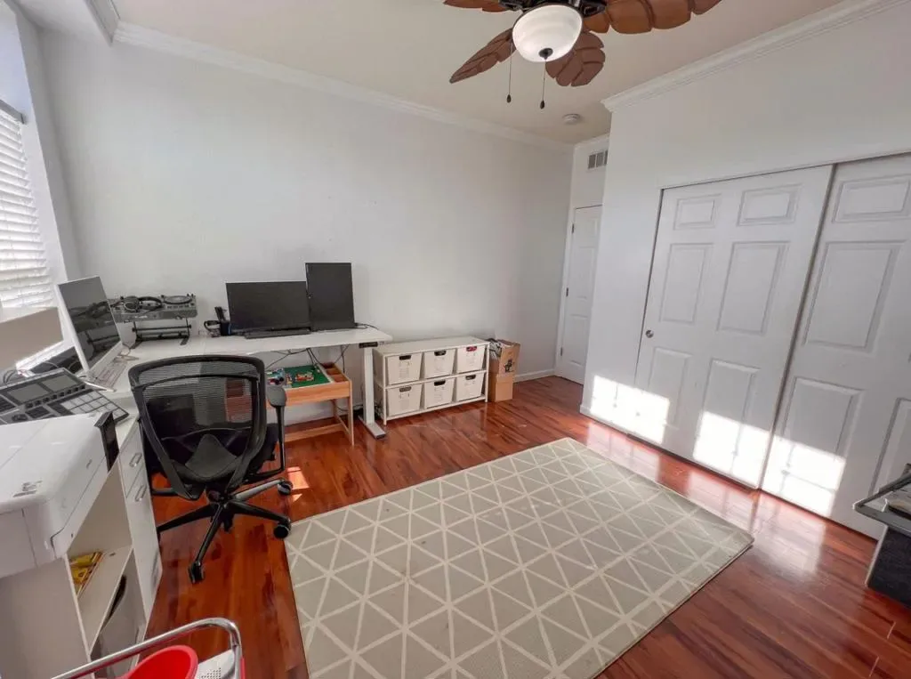 Welcome to this charming 3-bedroom, 2-bathroom home located in the vibrant city of San Jose. With 1,449 sq ft of living space, this home offers a well-designed kitchen featuring an island, gas oven range, microwave, and garbage disposal, all accented by a stylish countertop and illuminated by a skylight. The dining area also benefits from a skylight, creating a bright and inviting space. The home boasts durable laminate and tile flooring throughout, ensuring easy maintenance. Enjoy the convenience of central AC and heating. The master bedroom includes a walk-in closet, providing ample storage space. Deck in the patio area to enjoy a bbq or space for the family, Enclosed 2 car garage. For added convenience, a washer and dryer are included in the laundry area. This home is located within the San Jose Unified School District. The property also includes a 2-car garage. Ideally situated within the community, this home is just a short walk to the pool and nearby amenities. Features include a spacious backyard, perfect for outdoor enjoyment, and an upgraded myQ smart garage system for added convenience. The property shows well and is ready for its next owner.