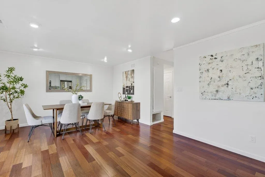 Welcome to this beautifully updated 3-bedroom, 2.5-bath townhouse in the desirable Tanglewood community of Blossom Valley. The spacious open-concept kitchen features stone countertops, a white subway-tile backsplash, a built-in electric range with double oven, and stainless steel appliances, seamlessly flowing into the bright living and dining areas. Rich hardwood flooring runs throughout the home, creating a warm and modern feel, and a convenient half bath is located on the main level. Upstairs, the primary suite offers a quiet, private balcony overlooking the greenbelt, a beautifully remodeled shower, and a wall-to-wall closet, providing a comfortable retreat. Two quiet, spacious bedrooms with mountain views. Central A/C, dual-pane windows, recessed lighting, in-unit laundry, copper plumbing, New roof shingles, ample storage, and a spacious, inviting private patio. Owners enjoy a park-like community setting with tree-lined paths, a pool, a clubhouse, a kitchen, ping-pong, and a BBQ area. * HOA INCLUDES WATER AND TRASH* Conveniently located just 0.2 miles from Branham Light Rail with easy access to Hwy 85, 87, and Almaden Expy, Minutes from Costco, Trader Joes, dining, and entertainment at Westfield Oakridge Mall. Move-in ready, Excellent location! Nice neighbors!
